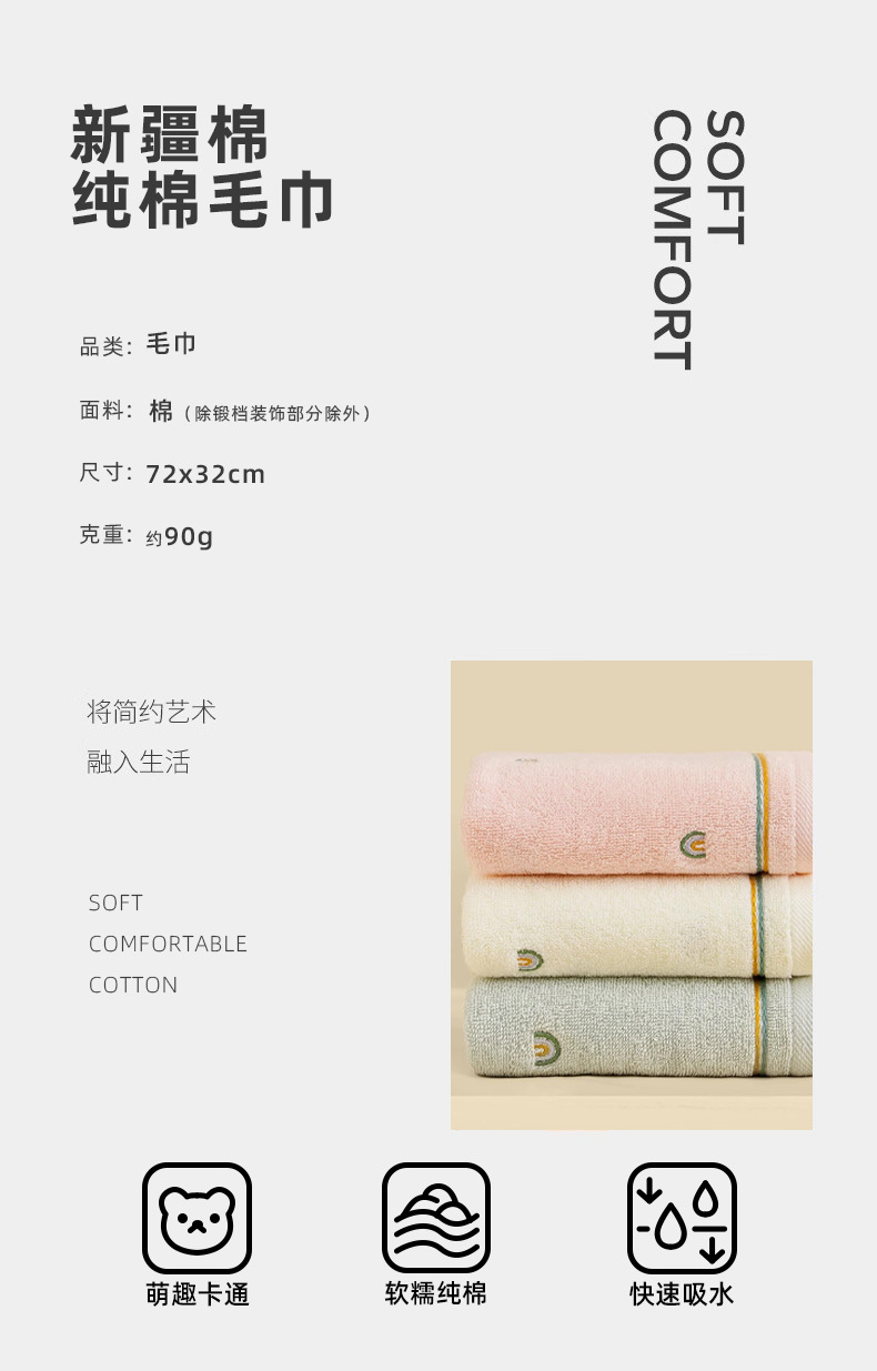 ![]() | Light gray [1 pack-yumi rainbow] pure cotton towel | 72*32cm | 3шт: ¥5.88, 50шт: ¥5.75, 100шт: ¥5.55 | 499 | 5958573232248 |