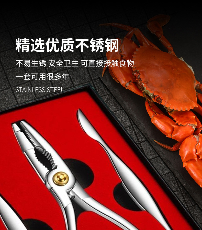 蟹钳三件蟹具吃蟹工具蟹叉蟹勺蟹钳品蟹拆蟹剥蟹吃蟹三件套