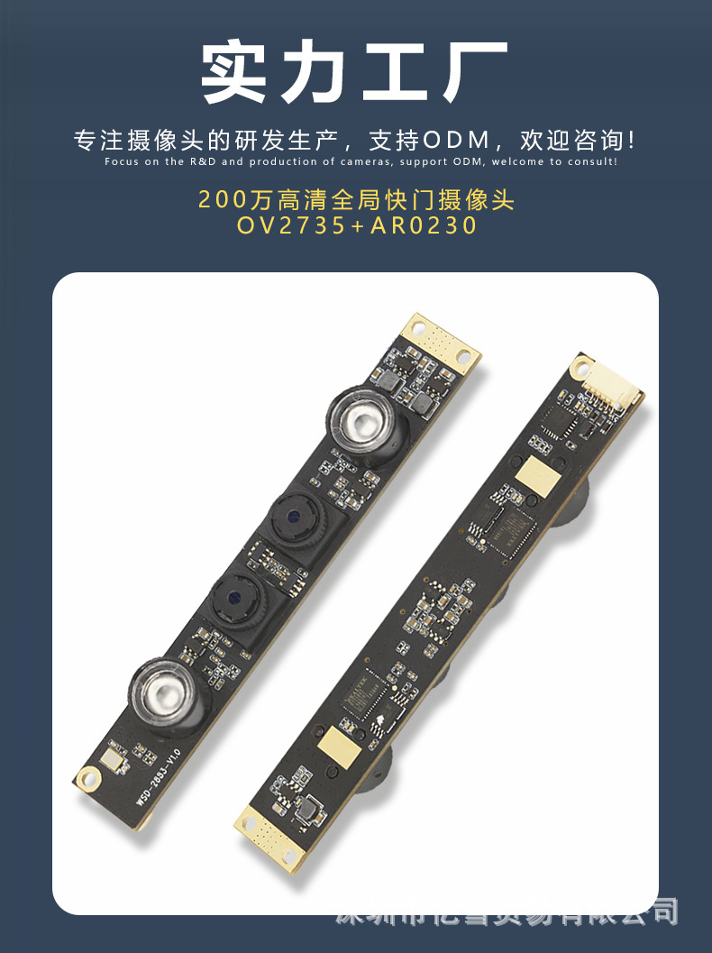 我们在摄像头模块、OEM和ODM方面有14年的经验,可以定制您想要的摄像头模块,如高感光摄像头、无人机、扫描枪、笔记本电脑、广告机、无人机ar、vr等摄像头模块