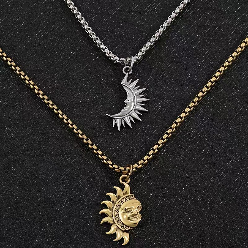 Женские аксессуары: асимметричное ожерелье с солнцем и луной, стиля европейской и американской моды, легкая роскошь