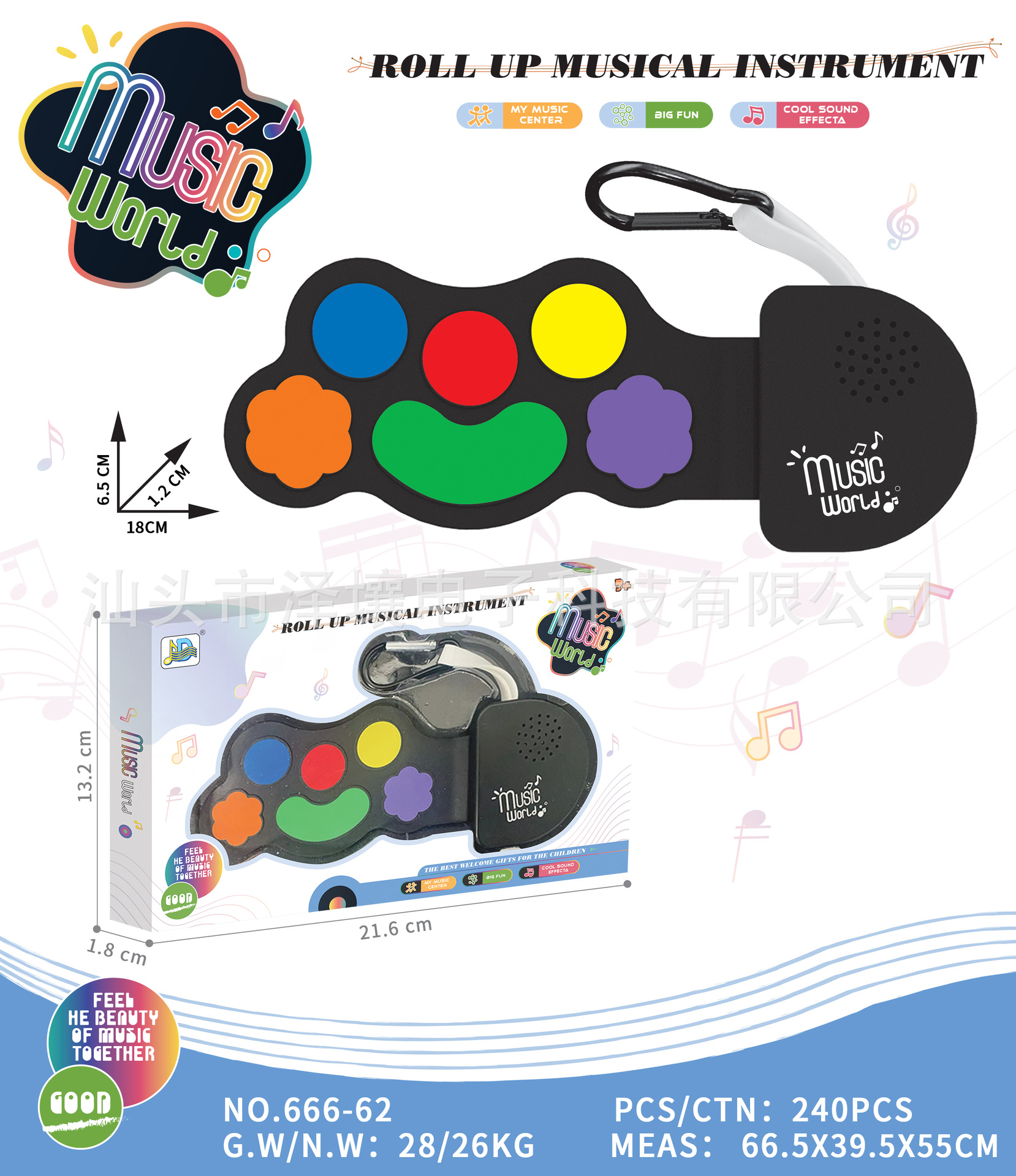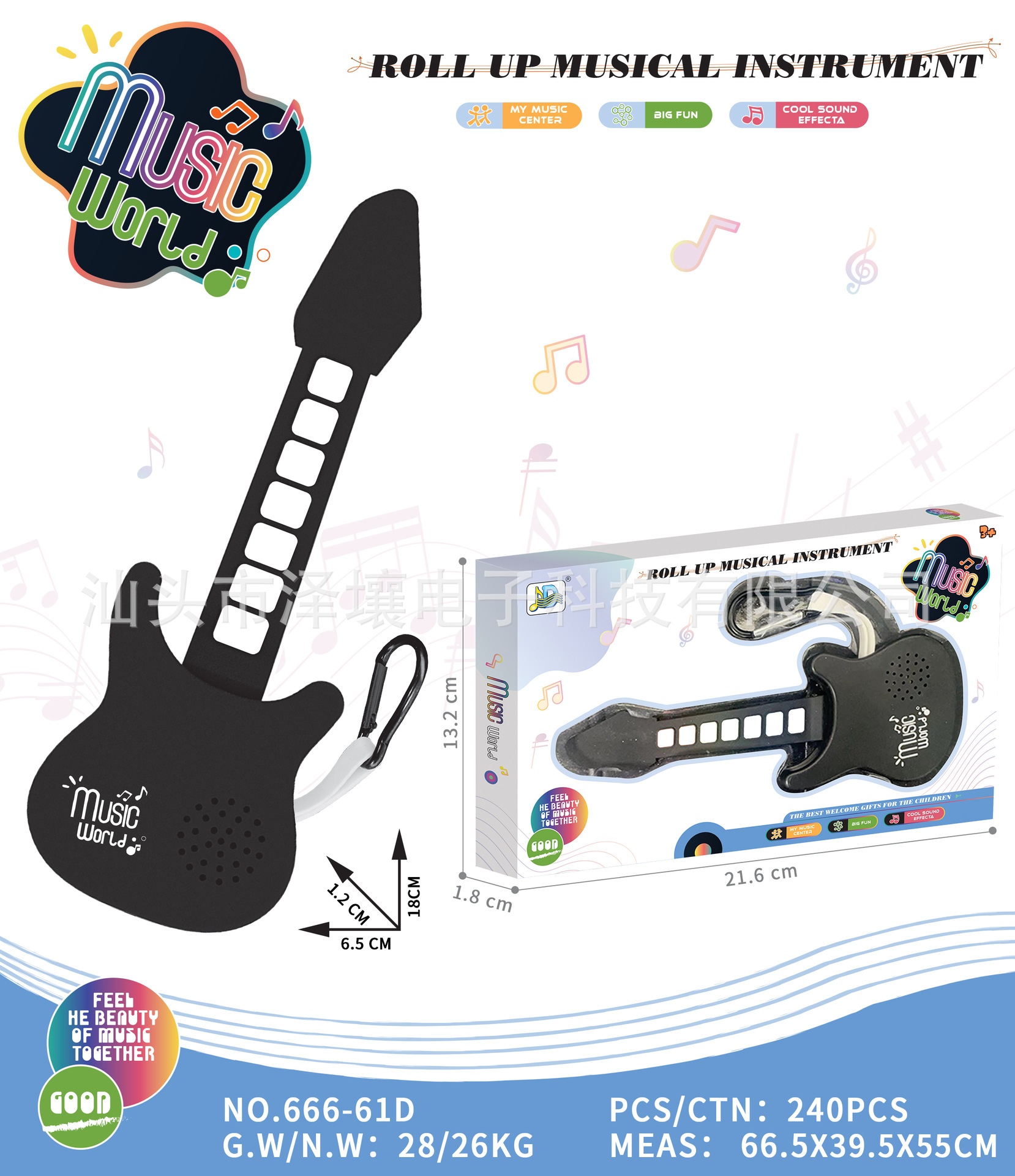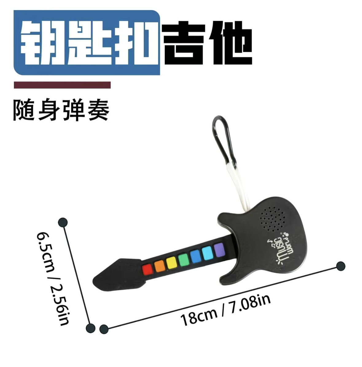 Мини-гитара с радугой, складной силиконовый барабан, электронный брелок-подвеска