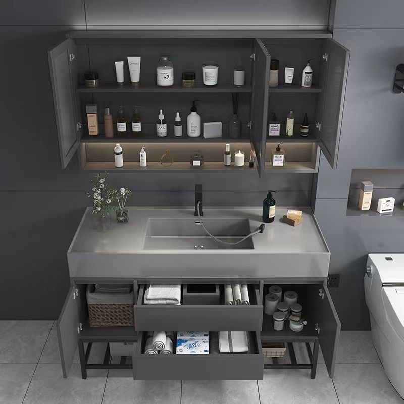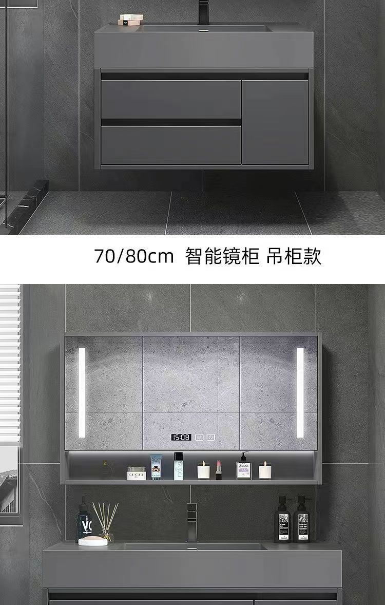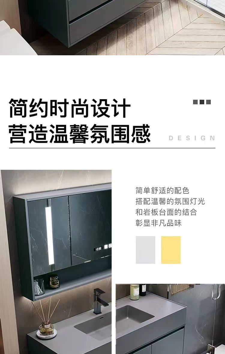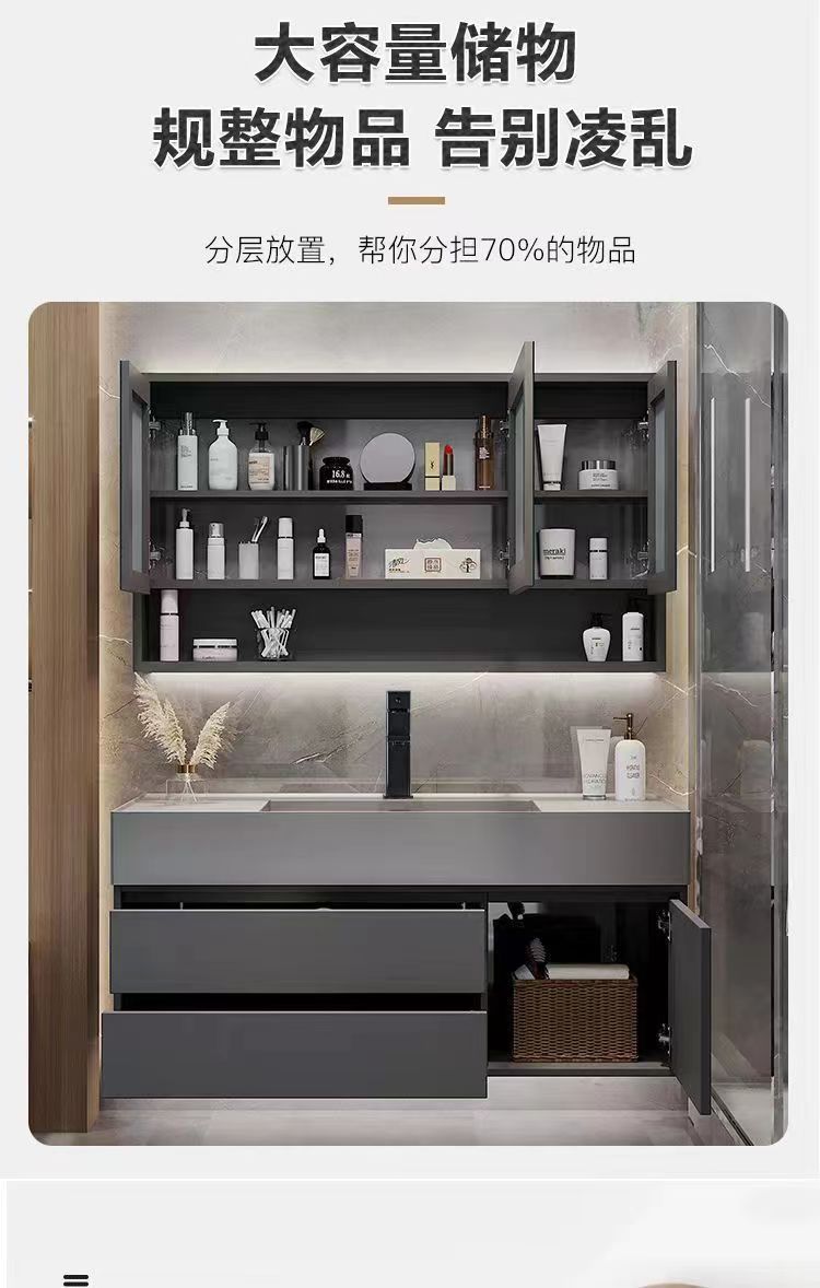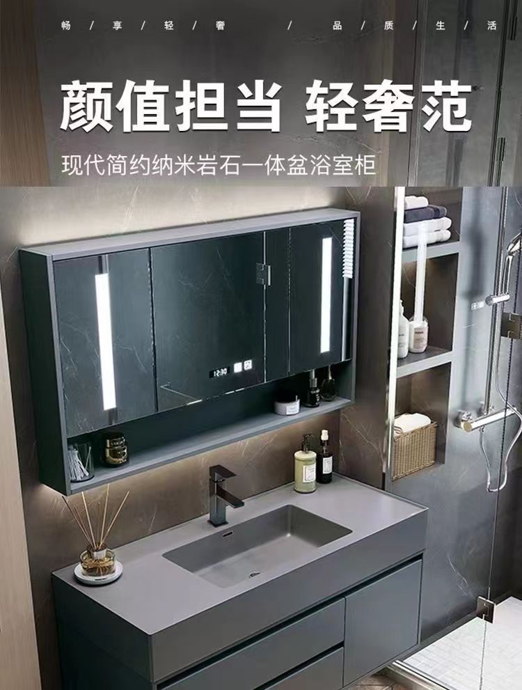 Легкая роскошь сланцевый интегрированный шкаф для ванной из массива дерева с умной нано-каменной раковиной