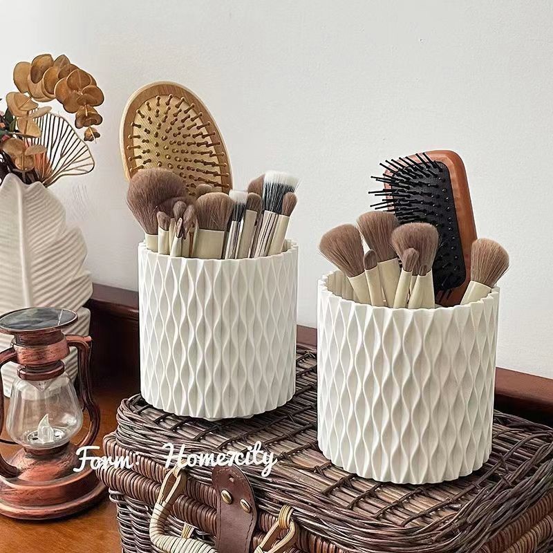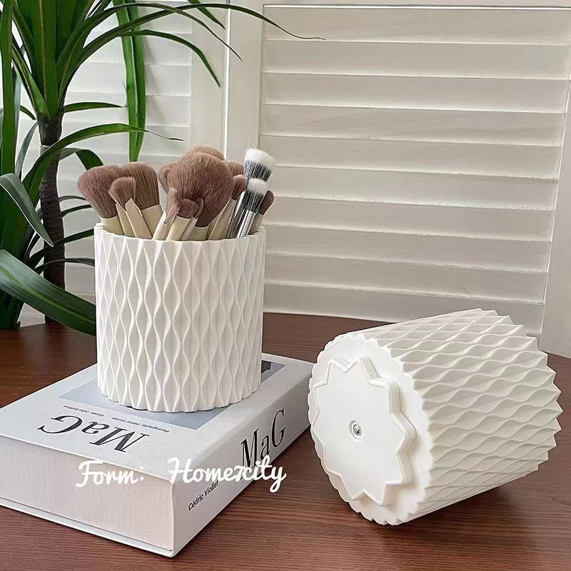 Инстиль белое вращающееся ведро для макияжа большого объема настольный органайзер для ручек с отделкой в стеганый узор
