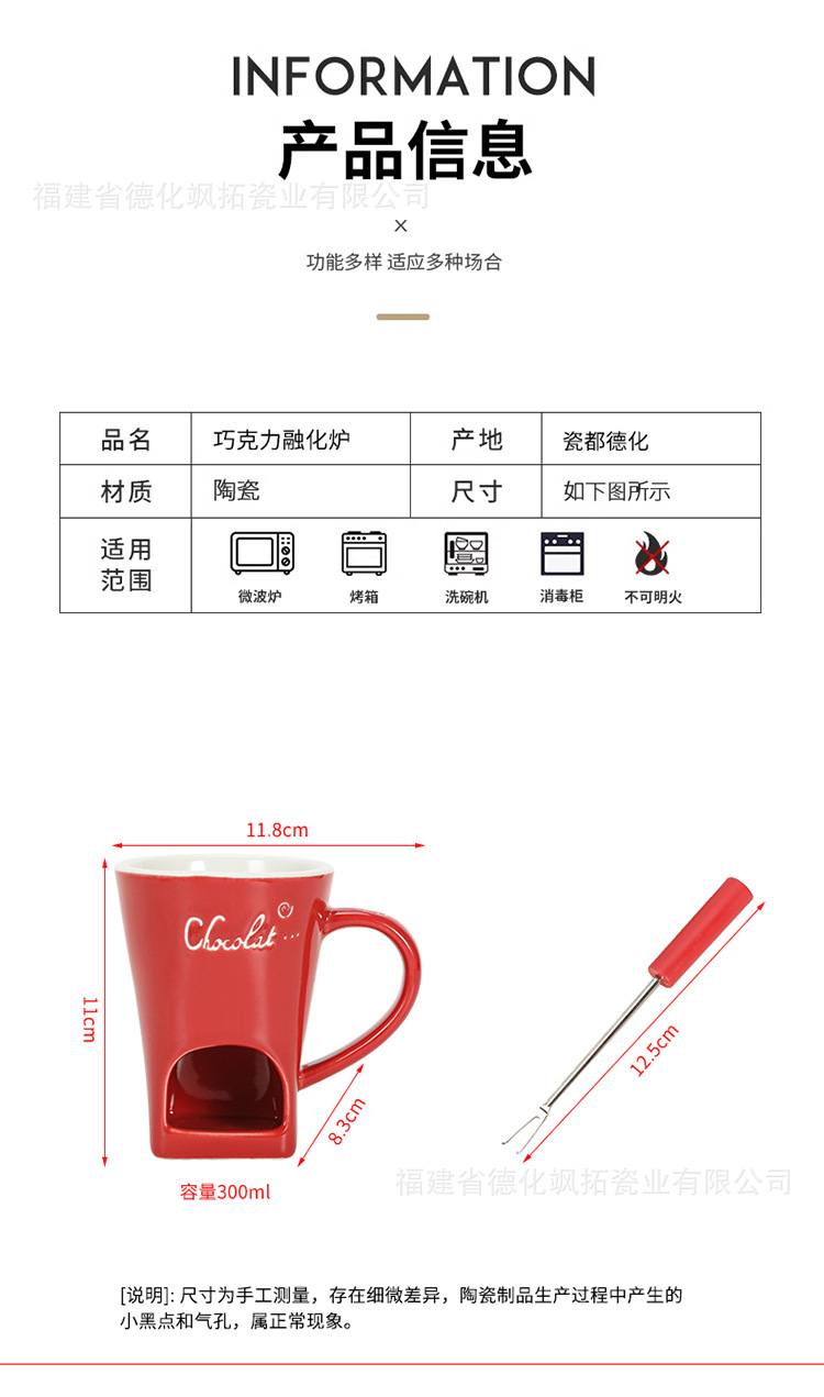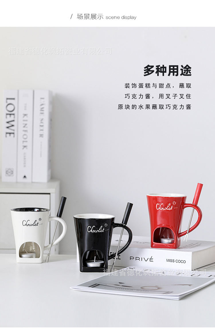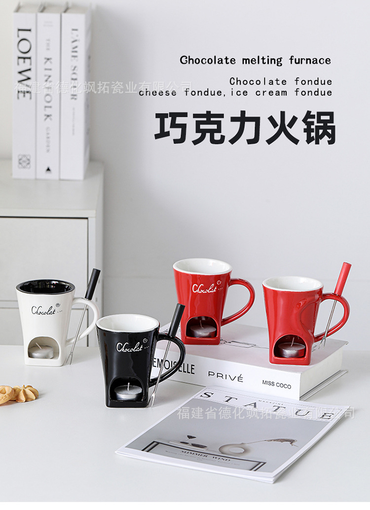 跨境纯色中温陶瓷巧克力火锅杯 芝士巧克力热熔杯 奶酪黄油加热杯
