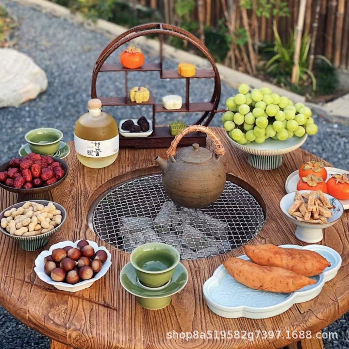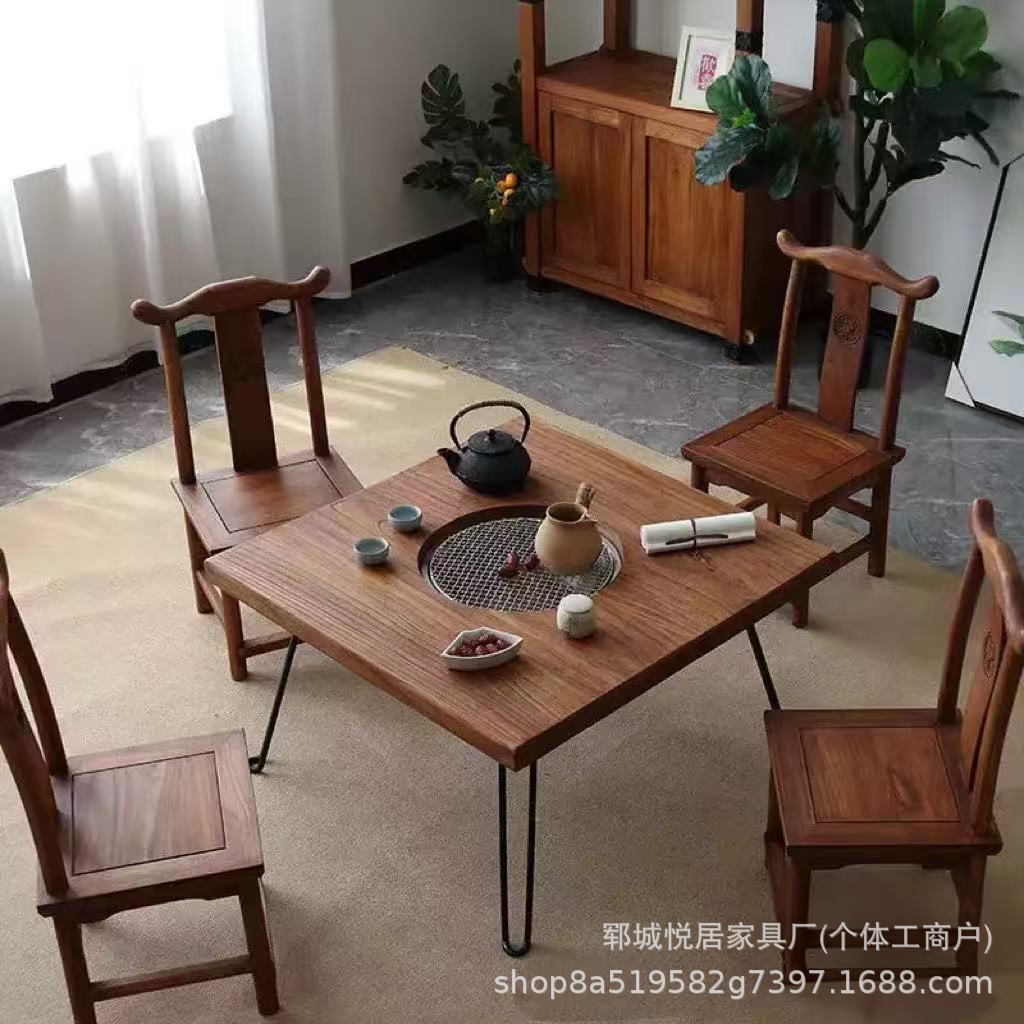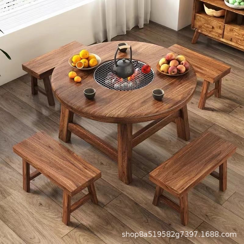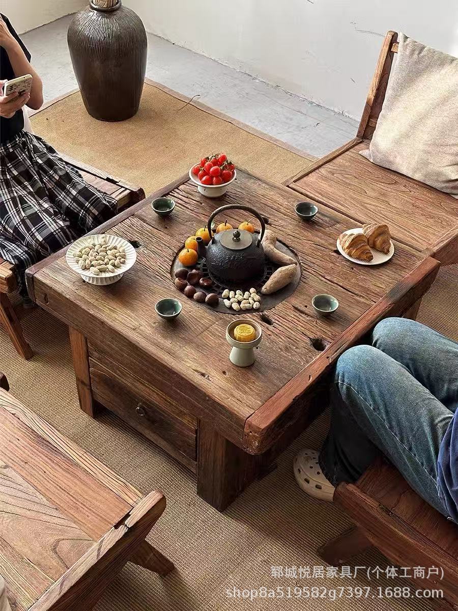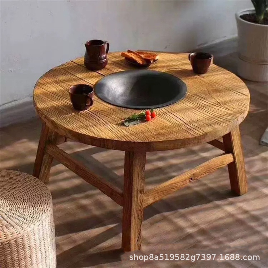 Стол для хот-пота Surprise Style из старого вяза для двора, балкона, зен-барабекю, чайный столик, дровяная печь, стол для печи