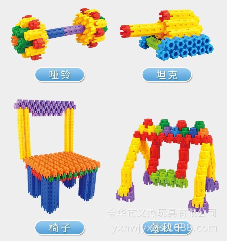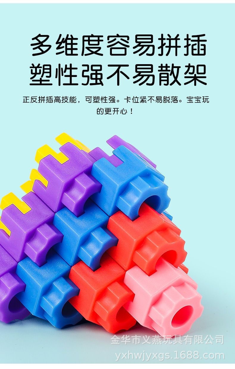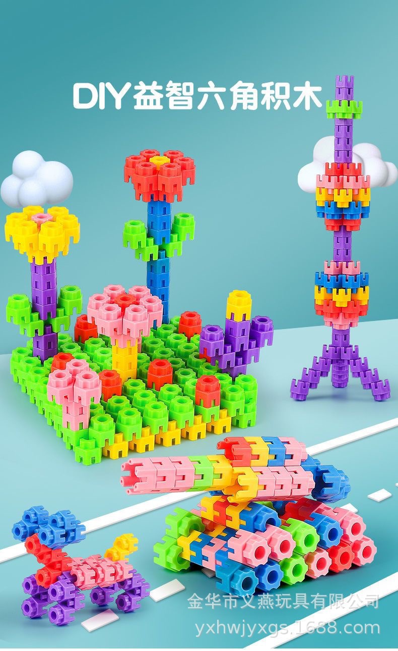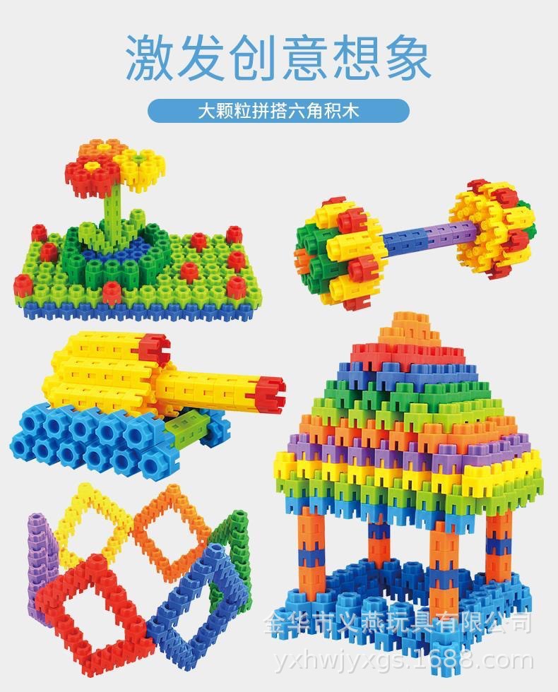 益智早教六角积木儿童玩具启蒙塑料积木拼插拼装3-6岁男孩女孩玩