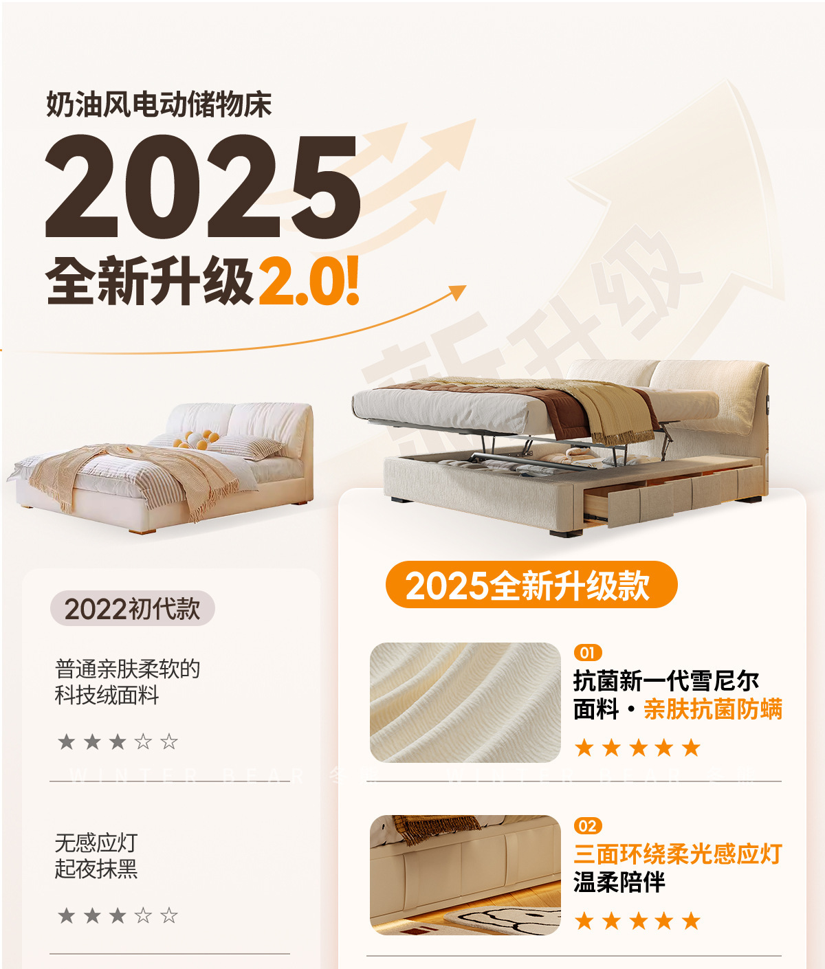 ![]() | Smart version/800g heavy chenille/encrypted upgraded silent frame | 1500mm*2000mm [translation structure + three draws] original fixed backrest | ¥3909.0 / ≈ 47 086 ₽ | 133 | 6125180194411 | |
