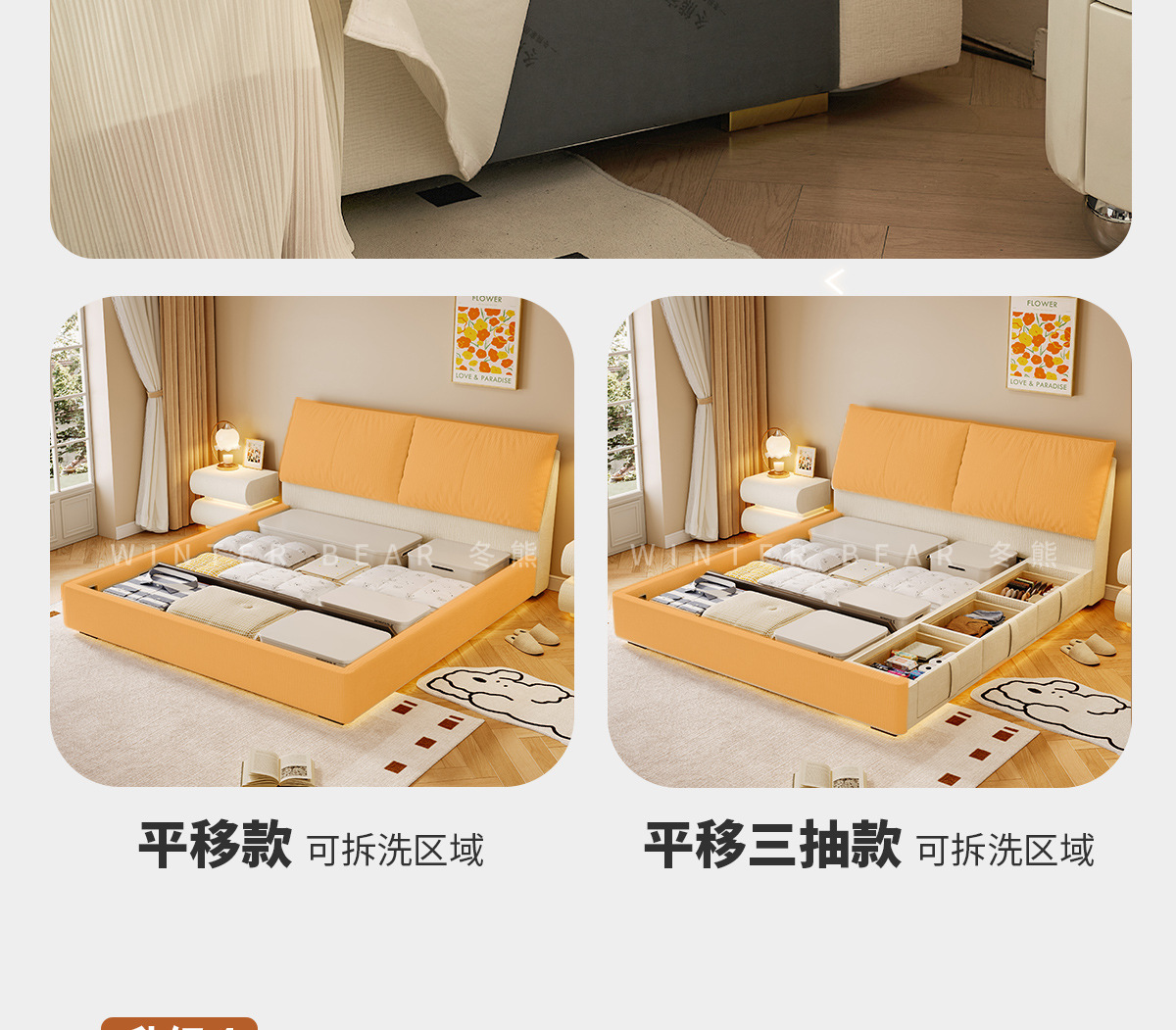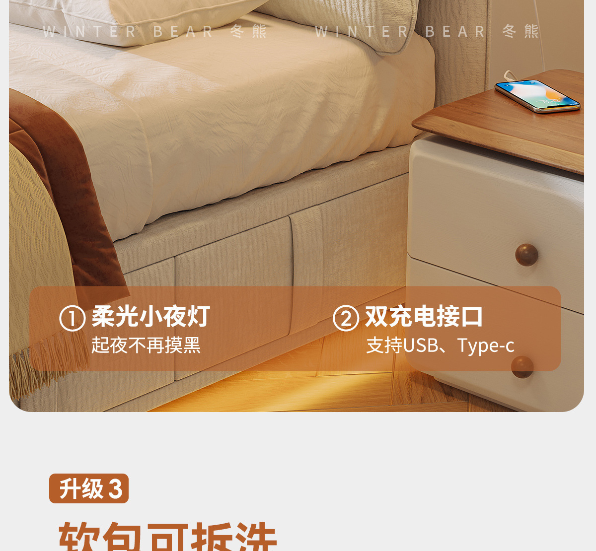 ![]() | Antibacterial cat claw cloth/all solid beech wood frame | 1800mm*2000mm [translation structure + three drawers] removable and washable backrest + bedside (the drawer surface is not removable and washable - please contact customer service for details) | ¥4003.0 / ≈ 48 218 ₽ | 133 | 6020465956066 | |