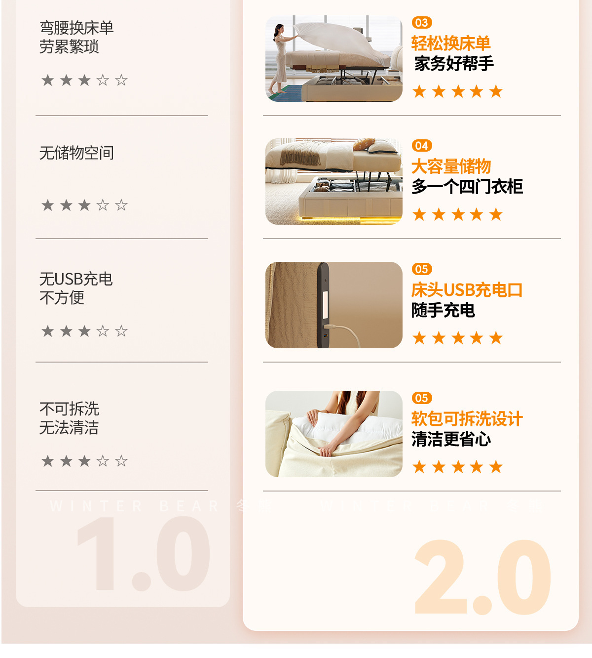 ![]() | Smart version/800g heavy chenille/encrypted upgraded silent frame | 1500mm*2000mm [translation structure + three drawers] removable and washable backrest + bedside (the drawer surface is not removable and washable - please contact customer service for details) | ¥4023.0 / ≈ 48 459 ₽ | 133 | 6125180194415 | |