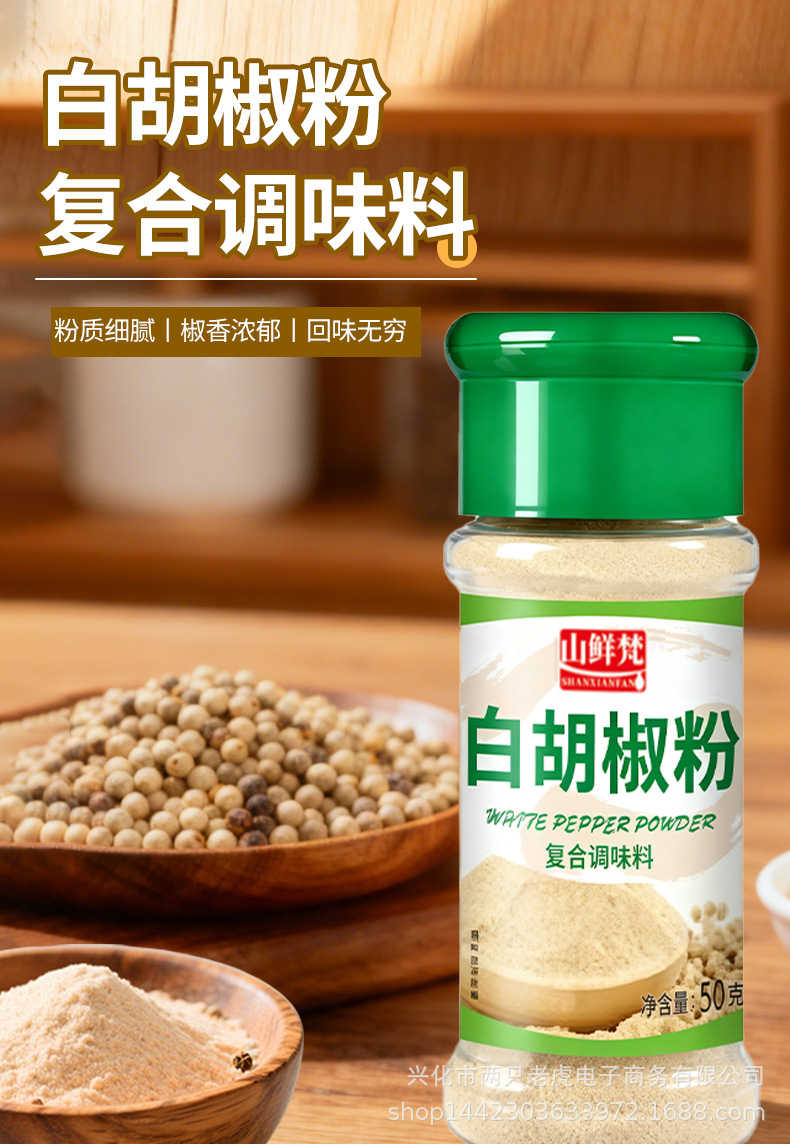 Молотый белый перец Шаньсяньфань 50г, перцовая соль, молотый тмин, молотый чили, смесь из пяти специй, белый кунжут, черный перец, розмарин