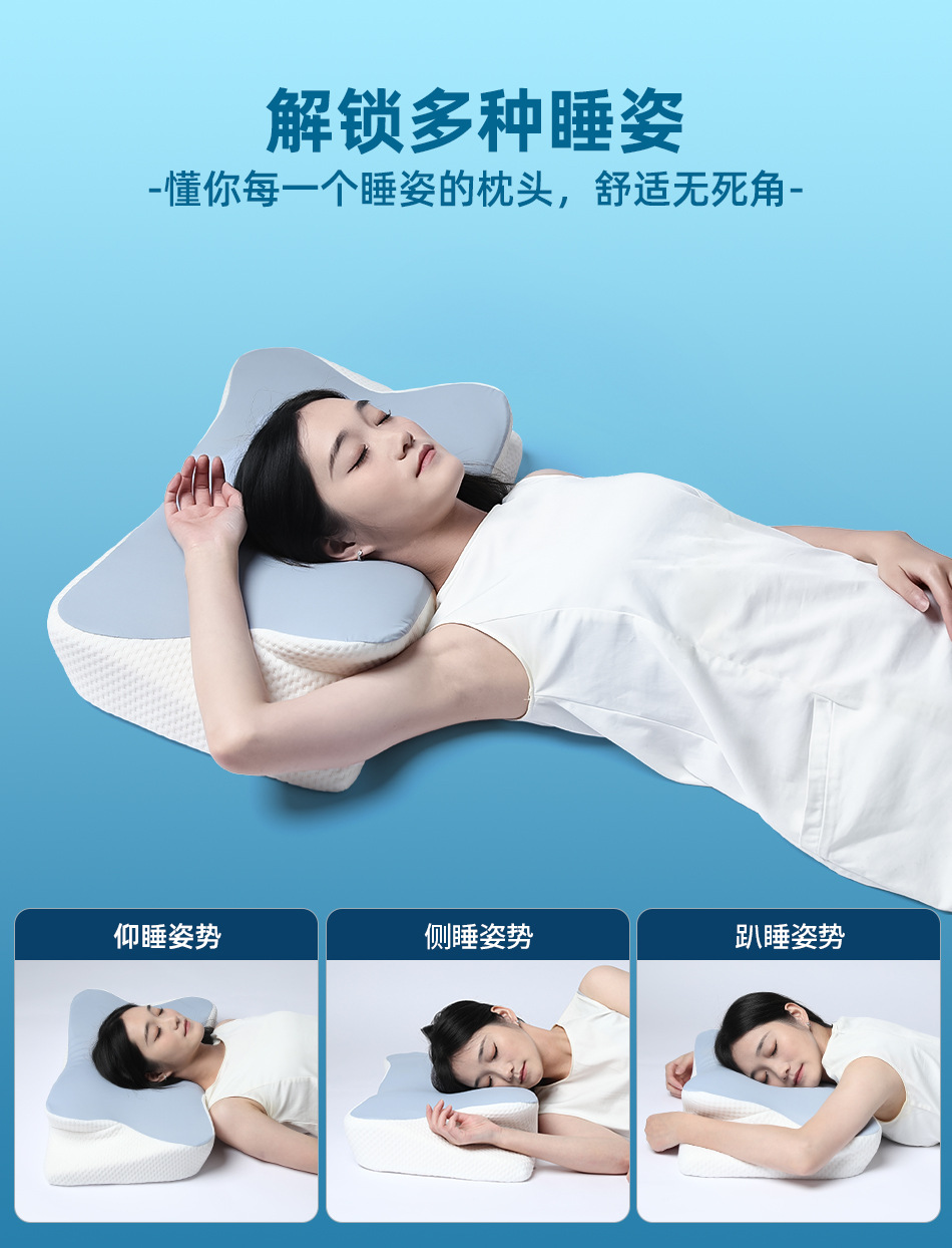 Кросс-бордерная новая подушка из ледяного шелка с эффектом памяти, эргономичная подушка в форме бабочки для глубокого сна, сна на спине и боку