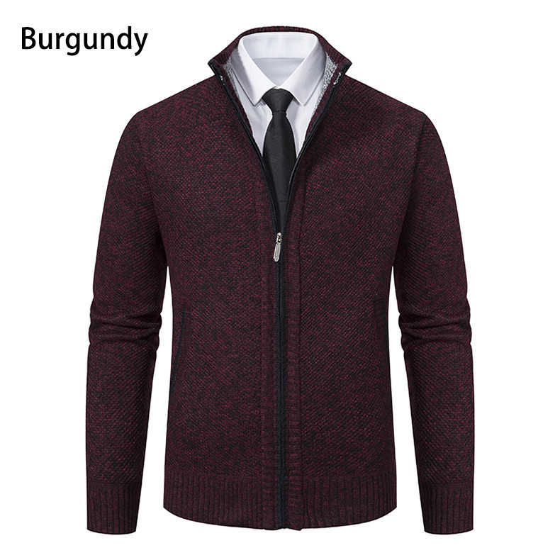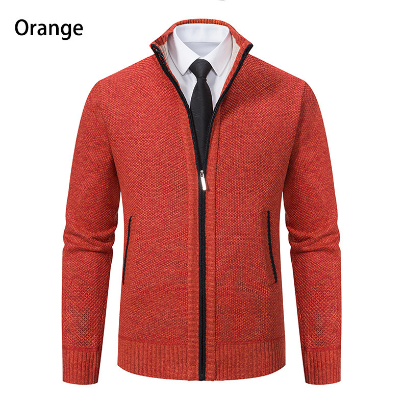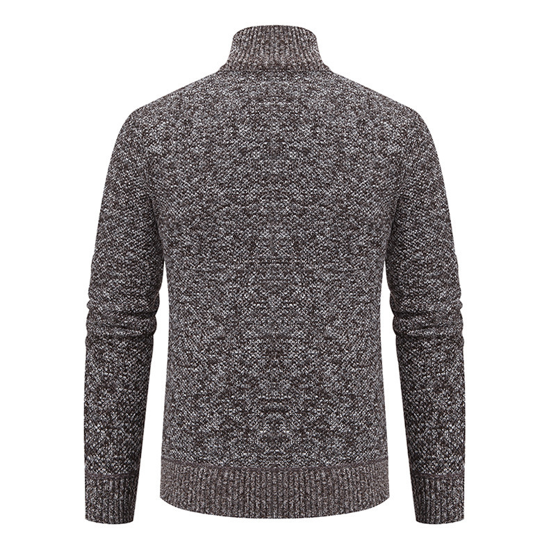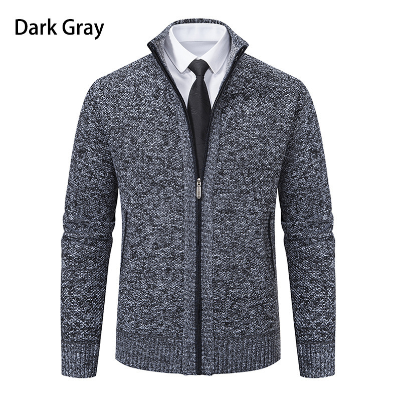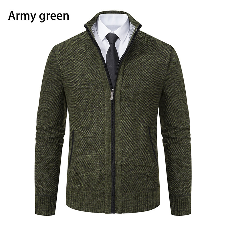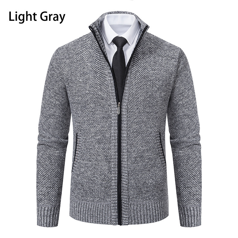 Кардиган для мужчин осень-зима, свитер, куртка, с молнией, воротник-стойка, вязаный, утепленный