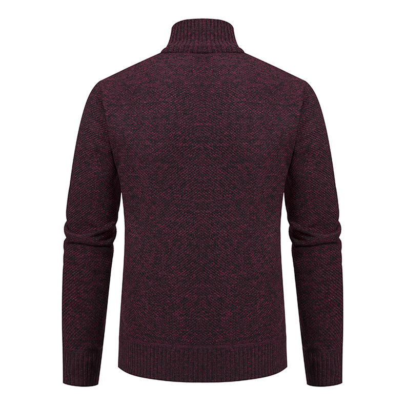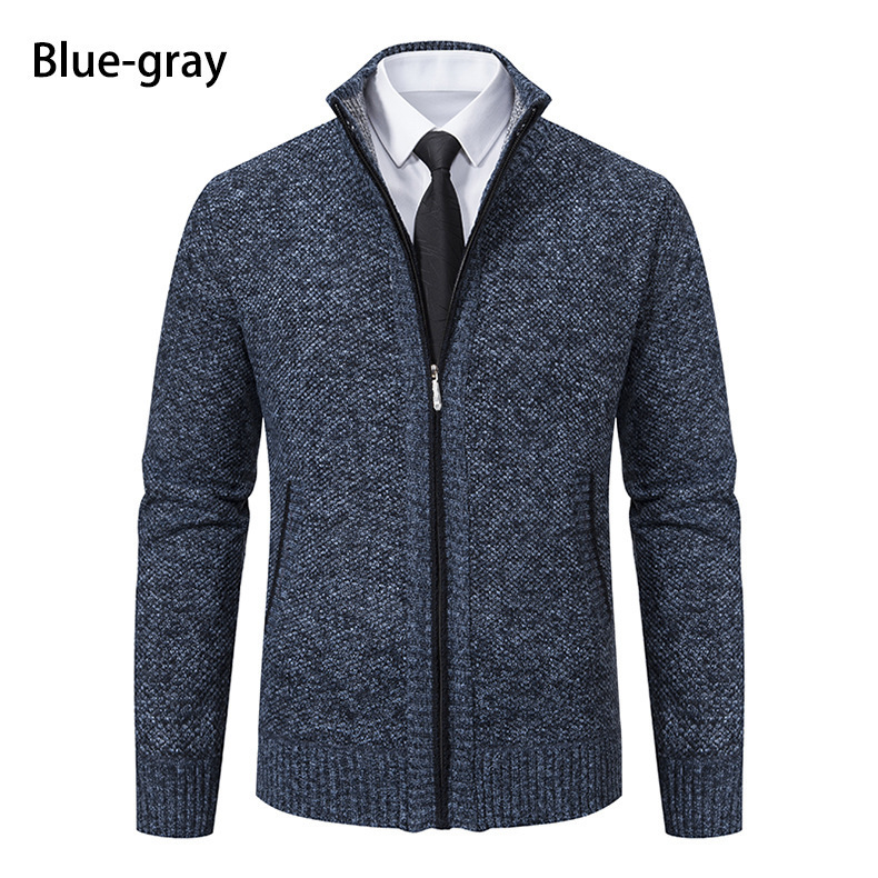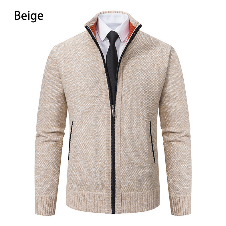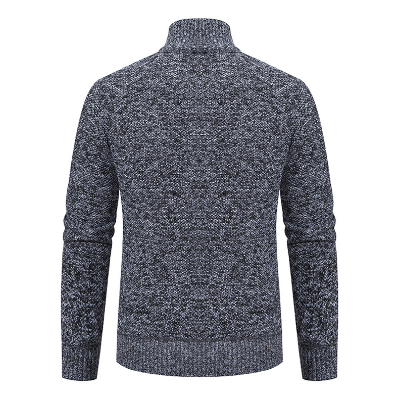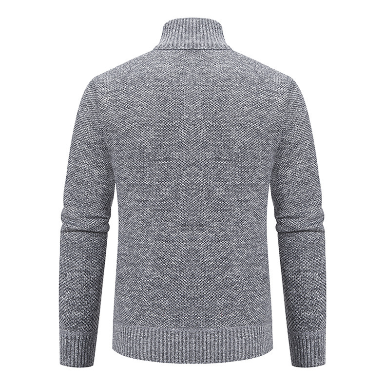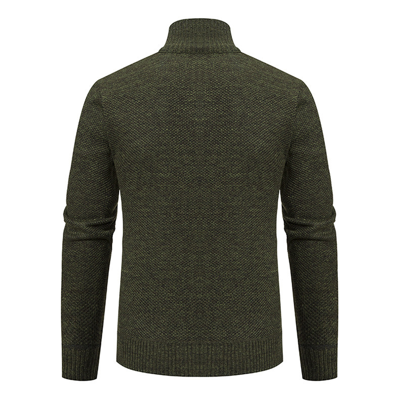 Кардиган для мужчин осень-зима, свитер, куртка, с молнией, воротник-стойка, вязаный, утепленный