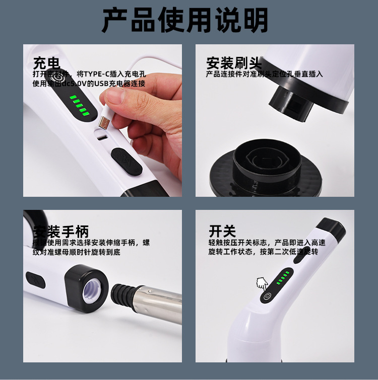 Кросс-бордовая многофункциональная электрическая щетка для чистки девять в одном, регулируемая по длине для ванной, двойная функция, бытовой чистящий артефакт
