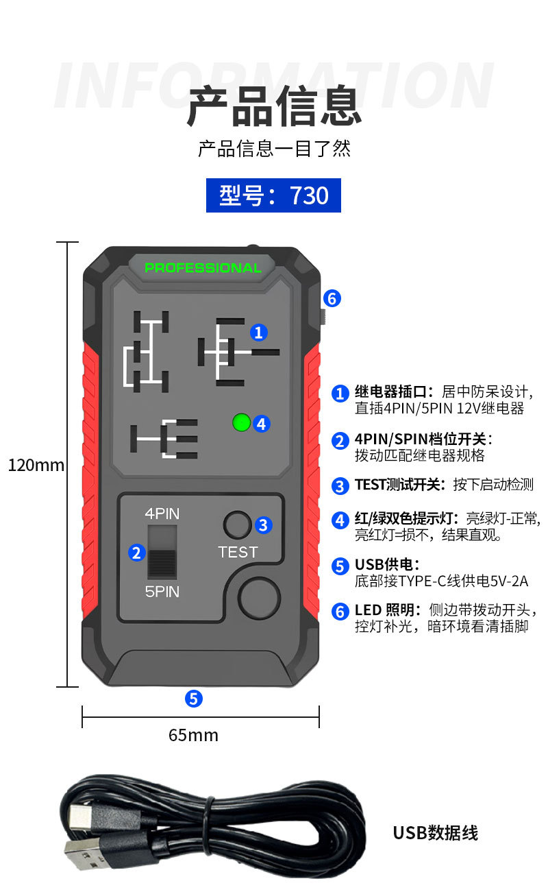 Тестер реле автомобиля Type-C, работающий от литиевой батареи, безопасный и портативный, напрямую от производителя