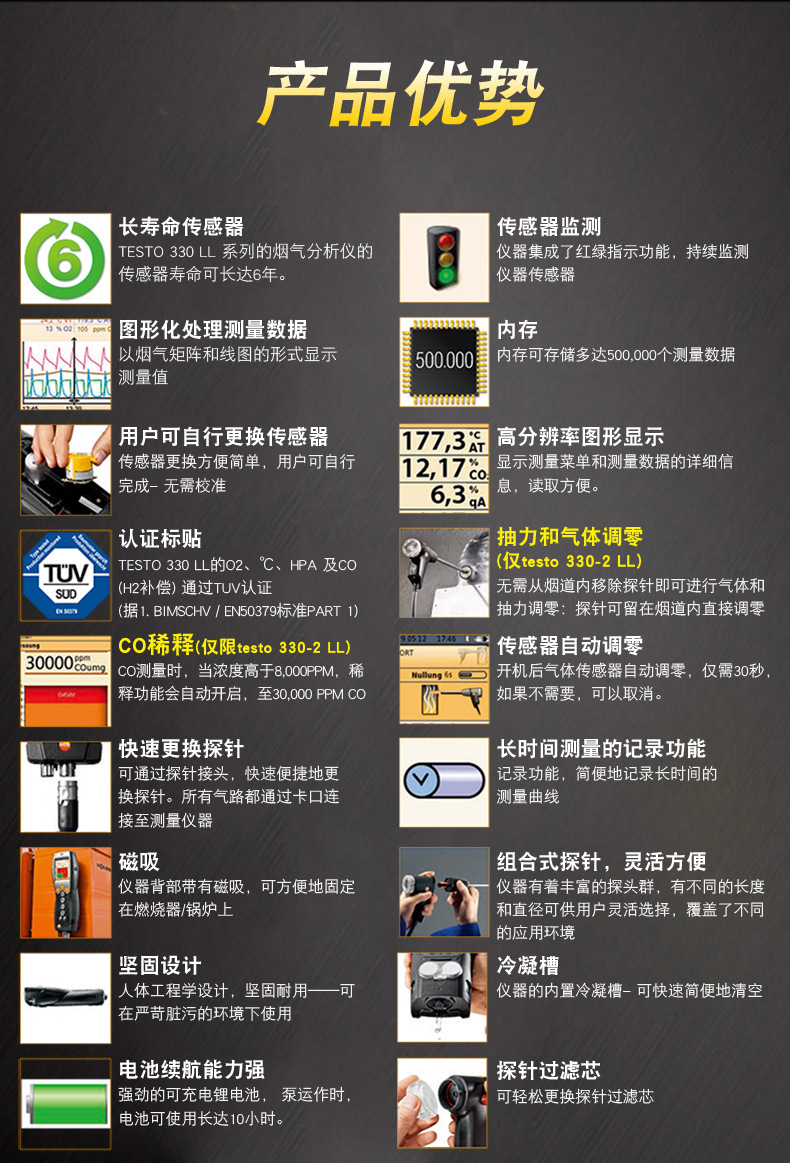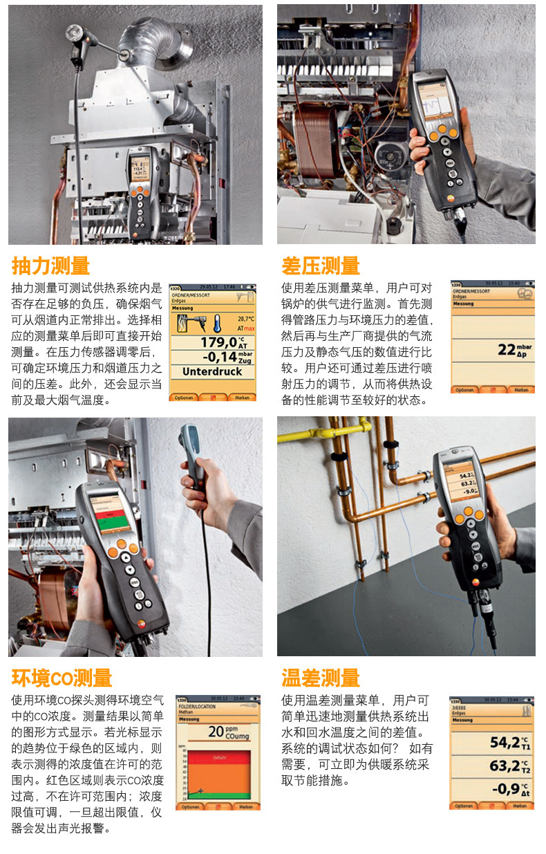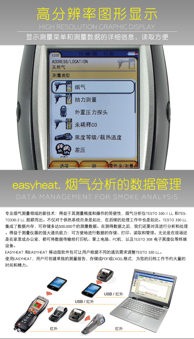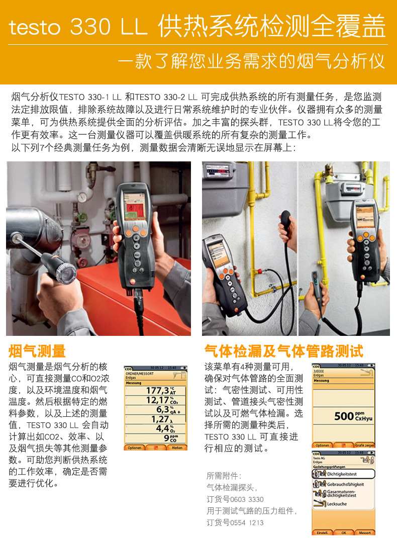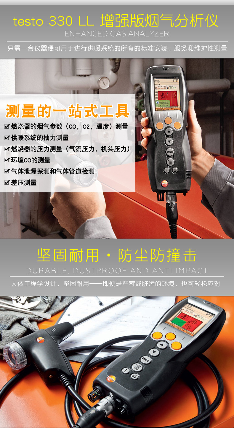 Анализатор дымовых газов Testo330 Улучшенная версия Промышленный анализатор эффективности сгорания котла Тестирование дыма