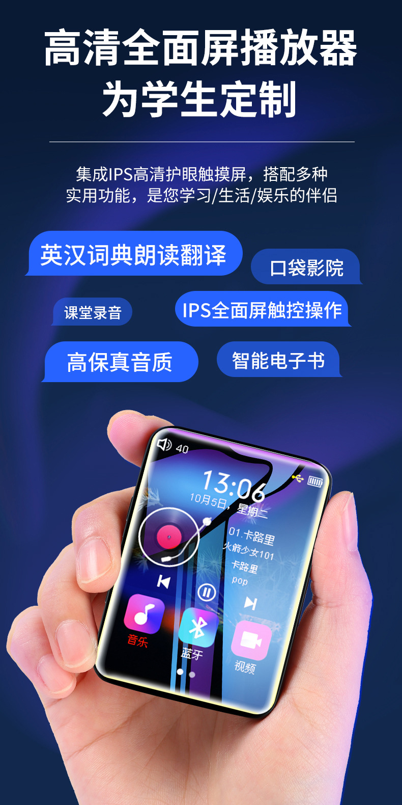 Кросс-браундер металлический Mp4 плеер Bluetooth сенсорный экран студент Mp3 Walkman без потерь музыкальный плеер оптовая продажа