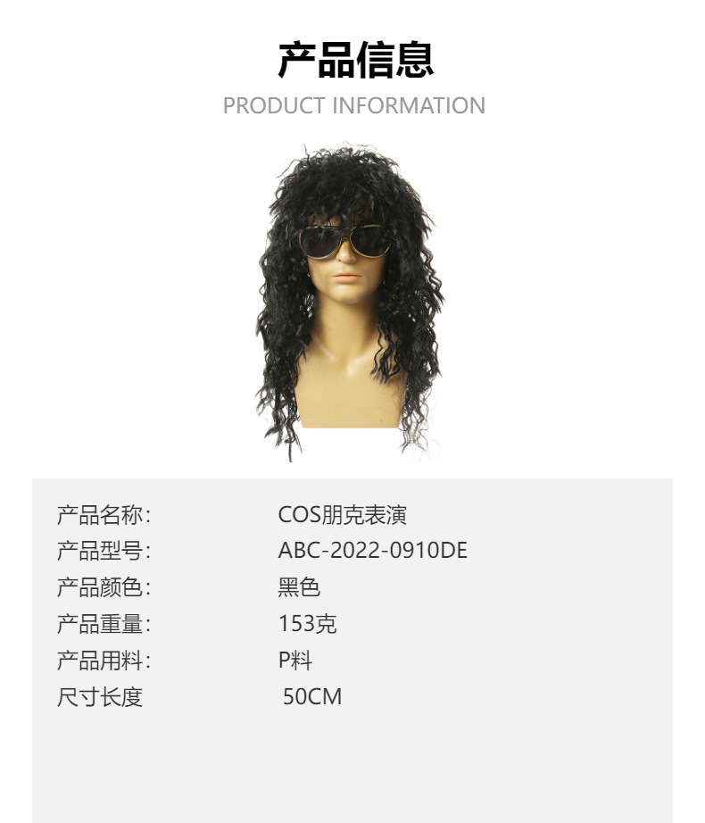 Хэллоуин 70-е ретро костюм панк черный парик диско европейский и американский мужской кудрявый парик