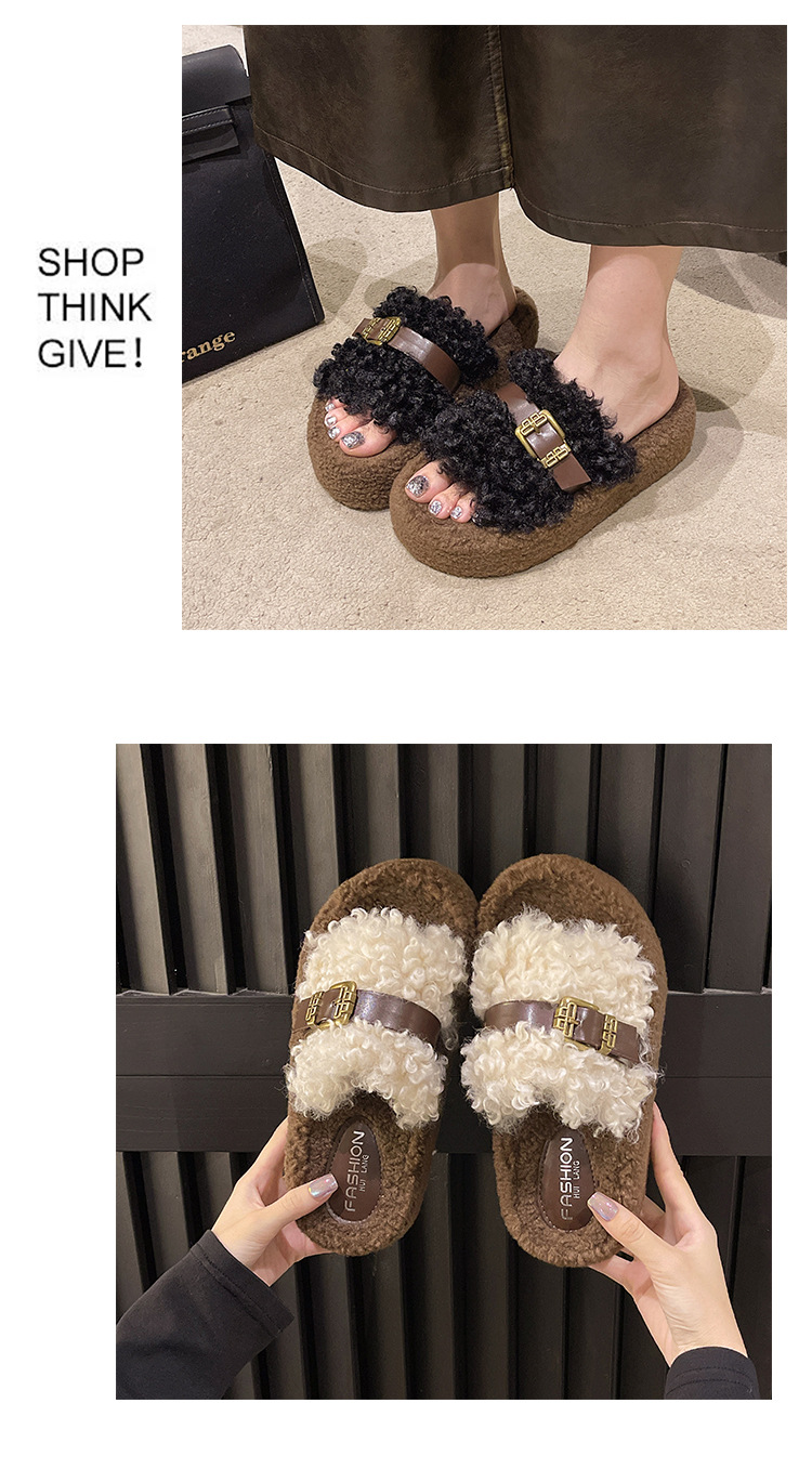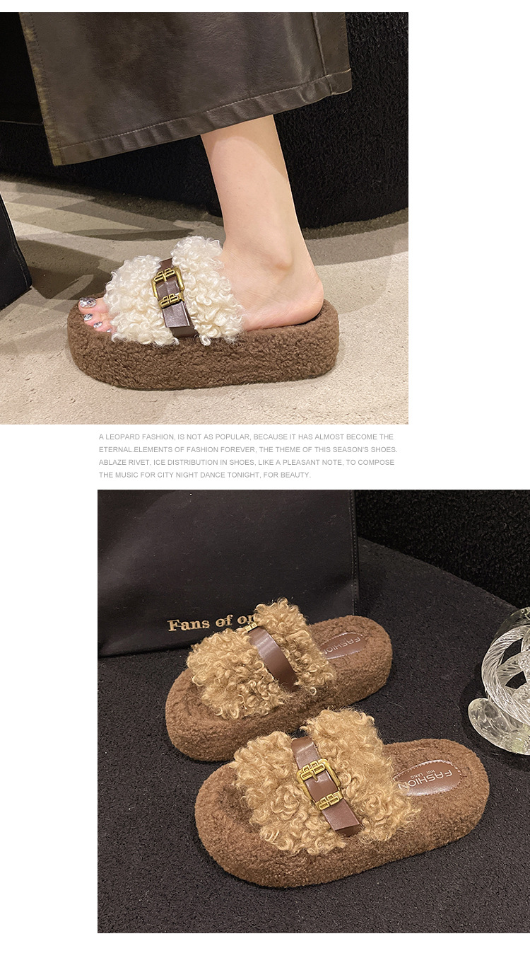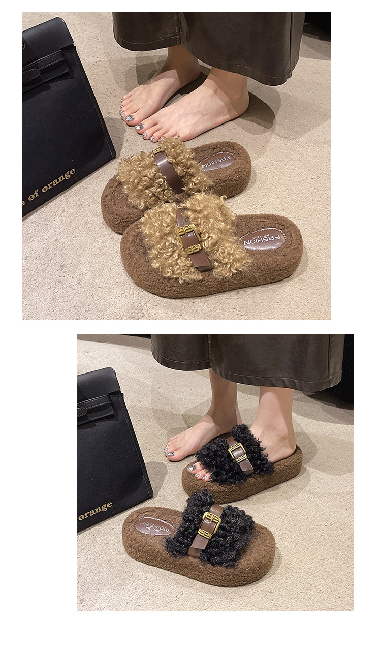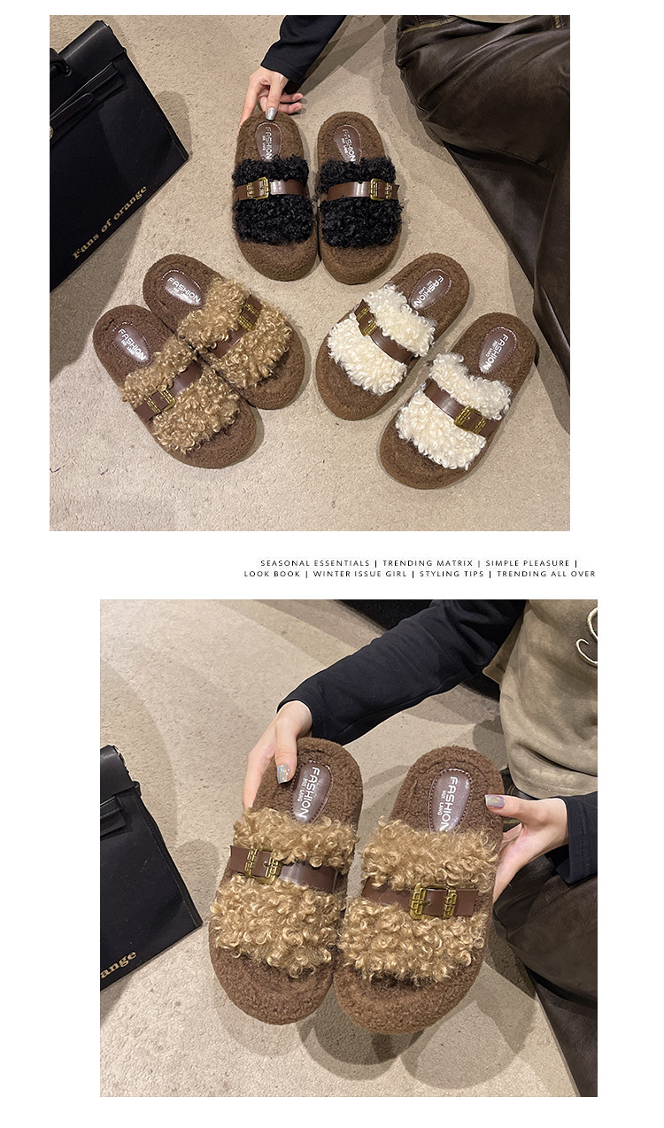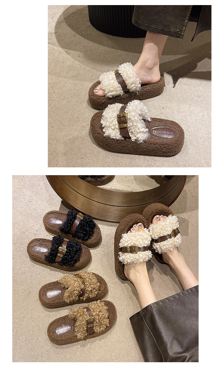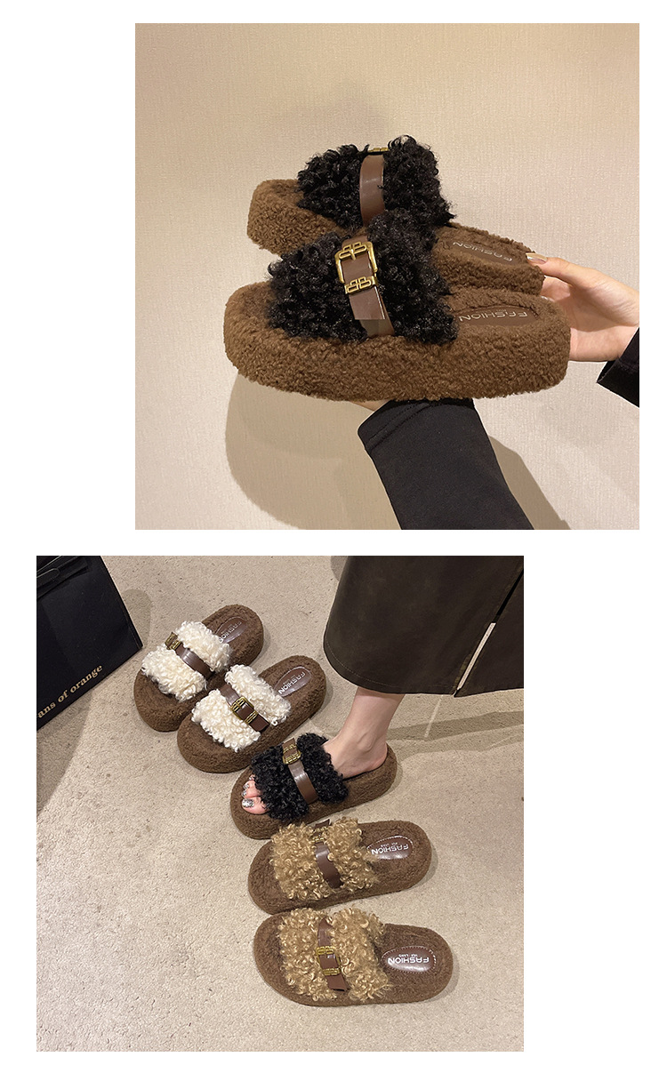 Теплые толстосоленные тапочки для женщин с пряжкой, оптовая продажа, пушистые хлопковые тапочки, осень 2025
