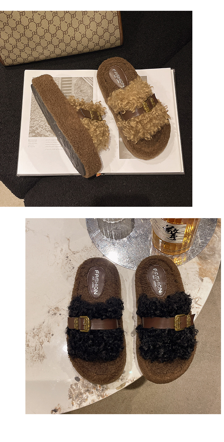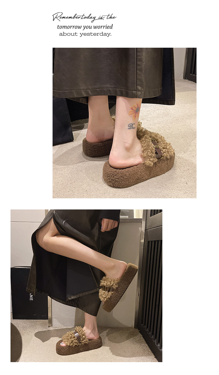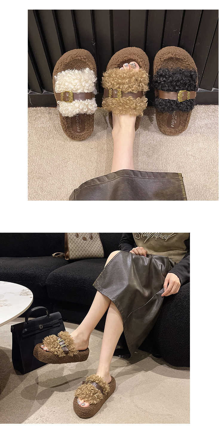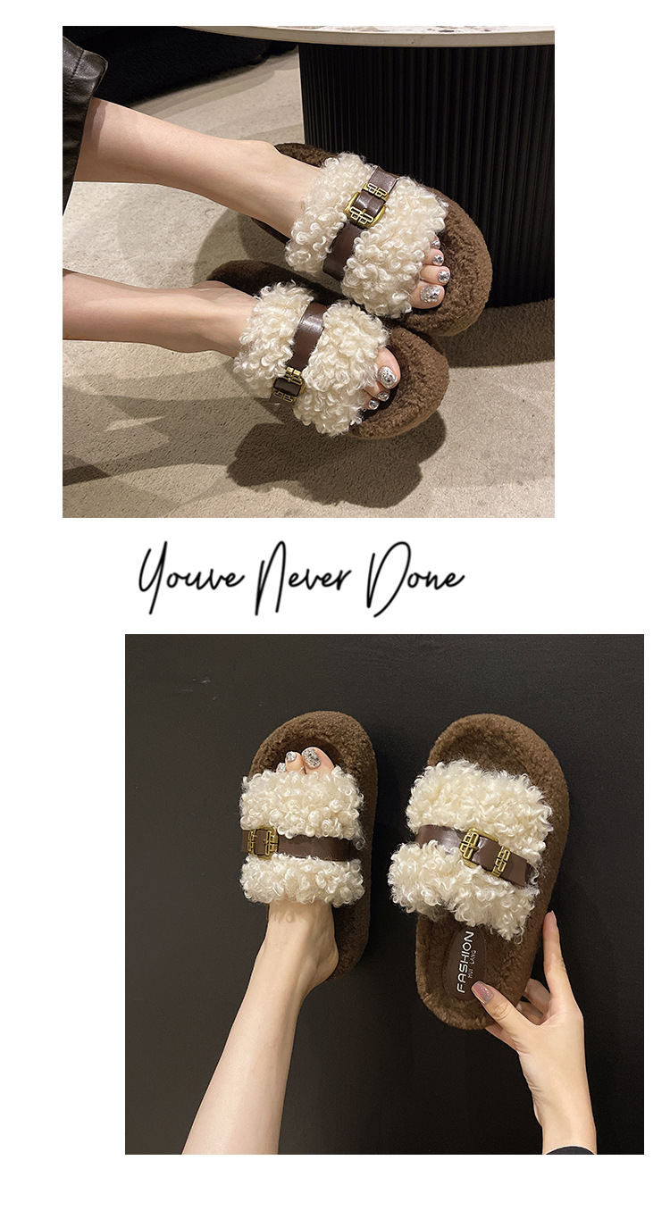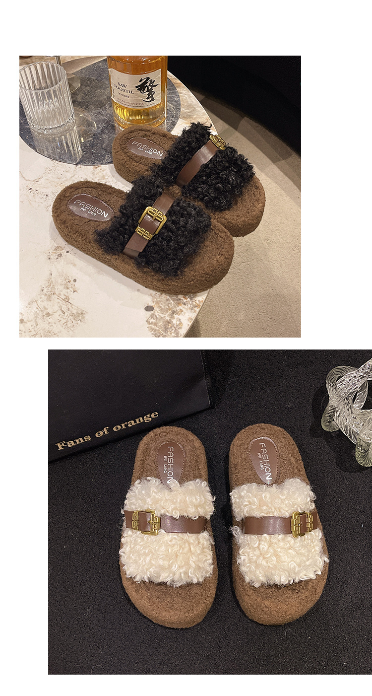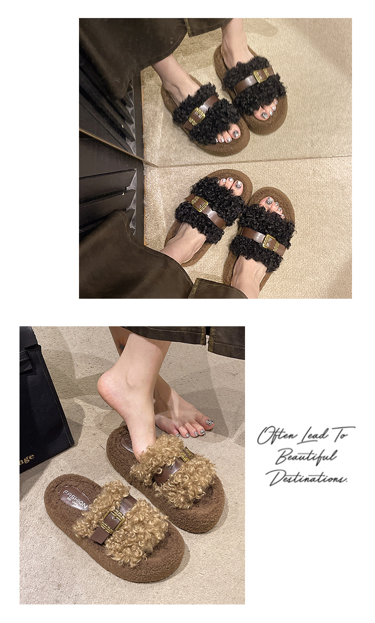 Теплые толстосоленные тапочки для женщин с пряжкой, оптовая продажа, пушистые хлопковые тапочки, осень 2025