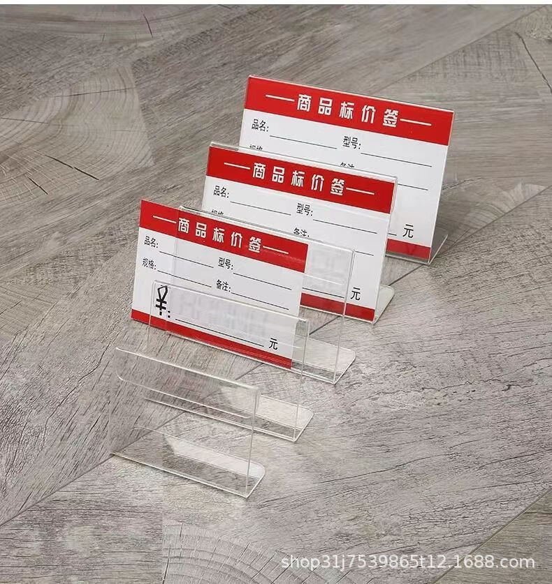 Прозрачный акриловый ценник в форме L, настольный дисплей для цен, карточка цен