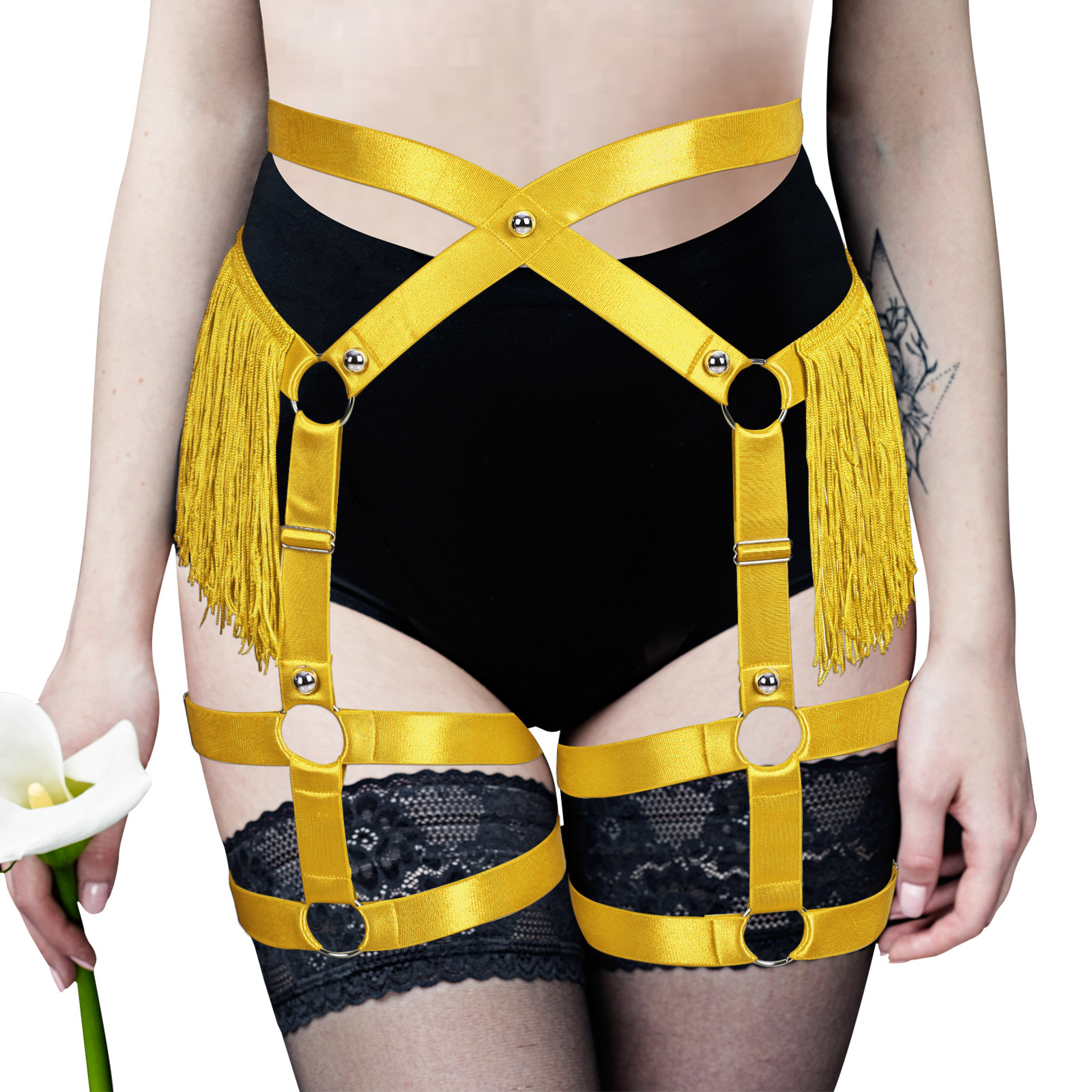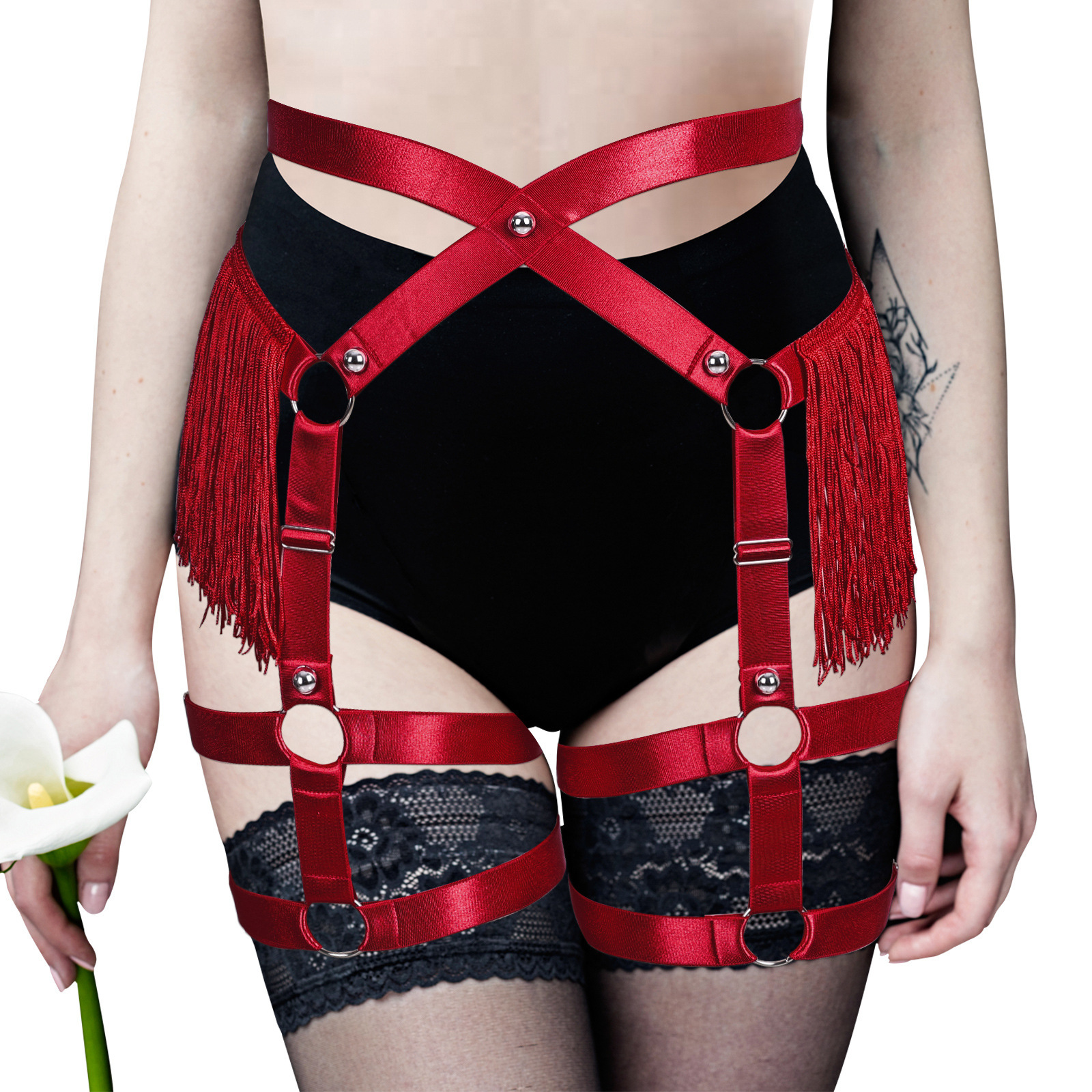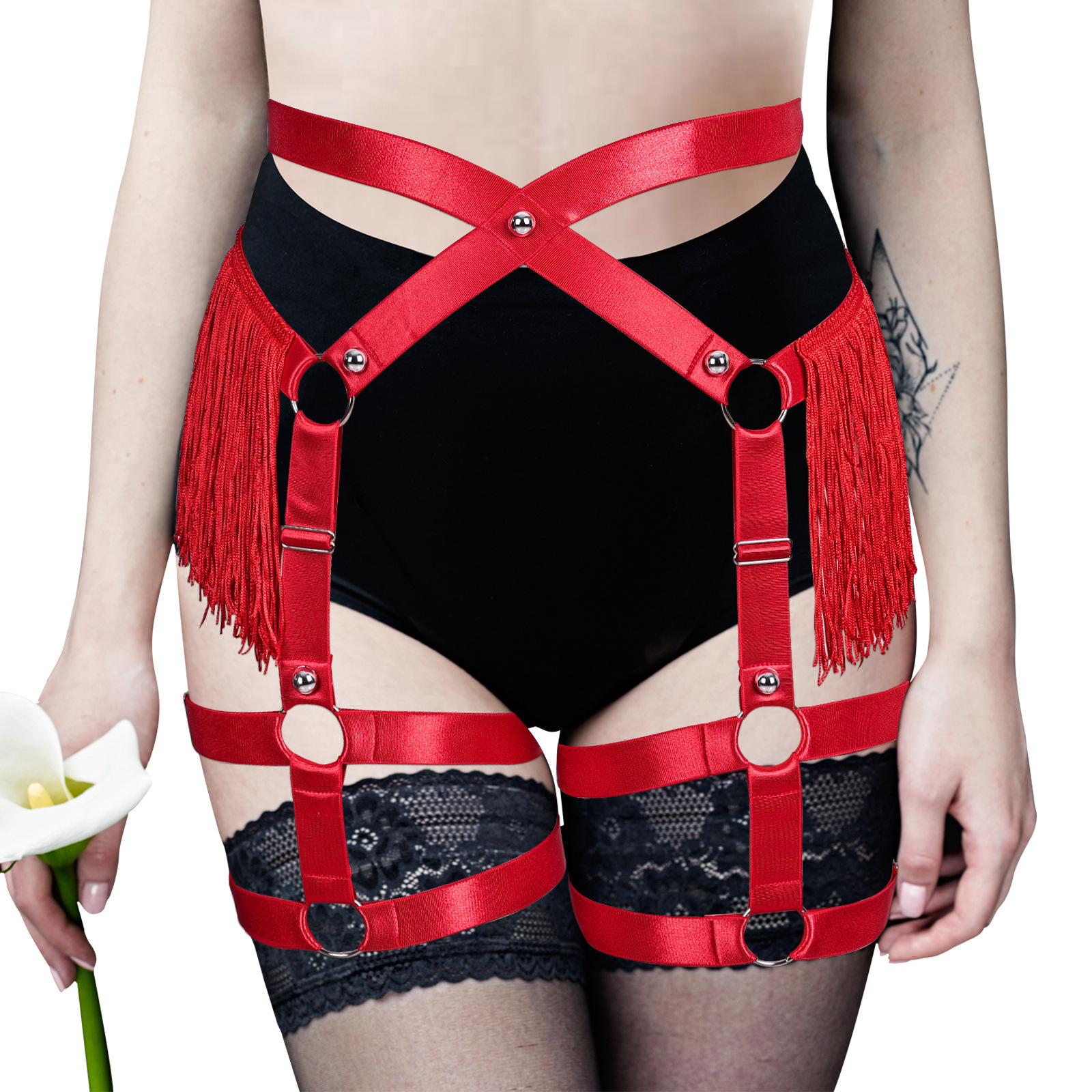 Юбка с кисточками в европейском и американском стиле, с ремнями на бедрах, высокая талия, женский аксессуар для Хэллоуина, панк-одежда с вырезами