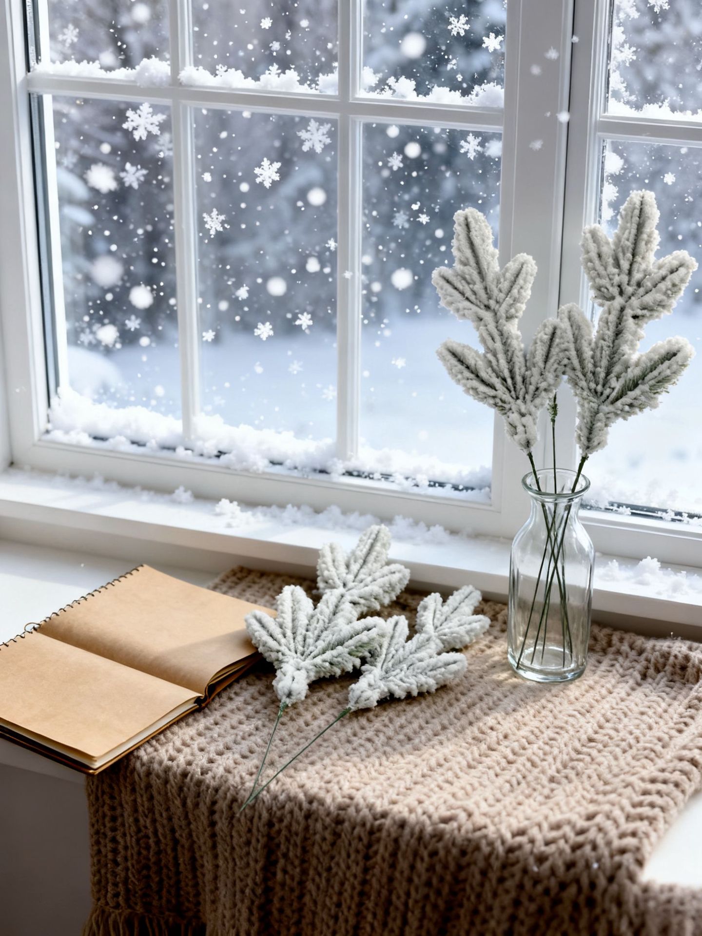 Импортные рождественские снежинки с флокированием, пятиконечные снежинки, ветки сосны для рождественского декора в помещении