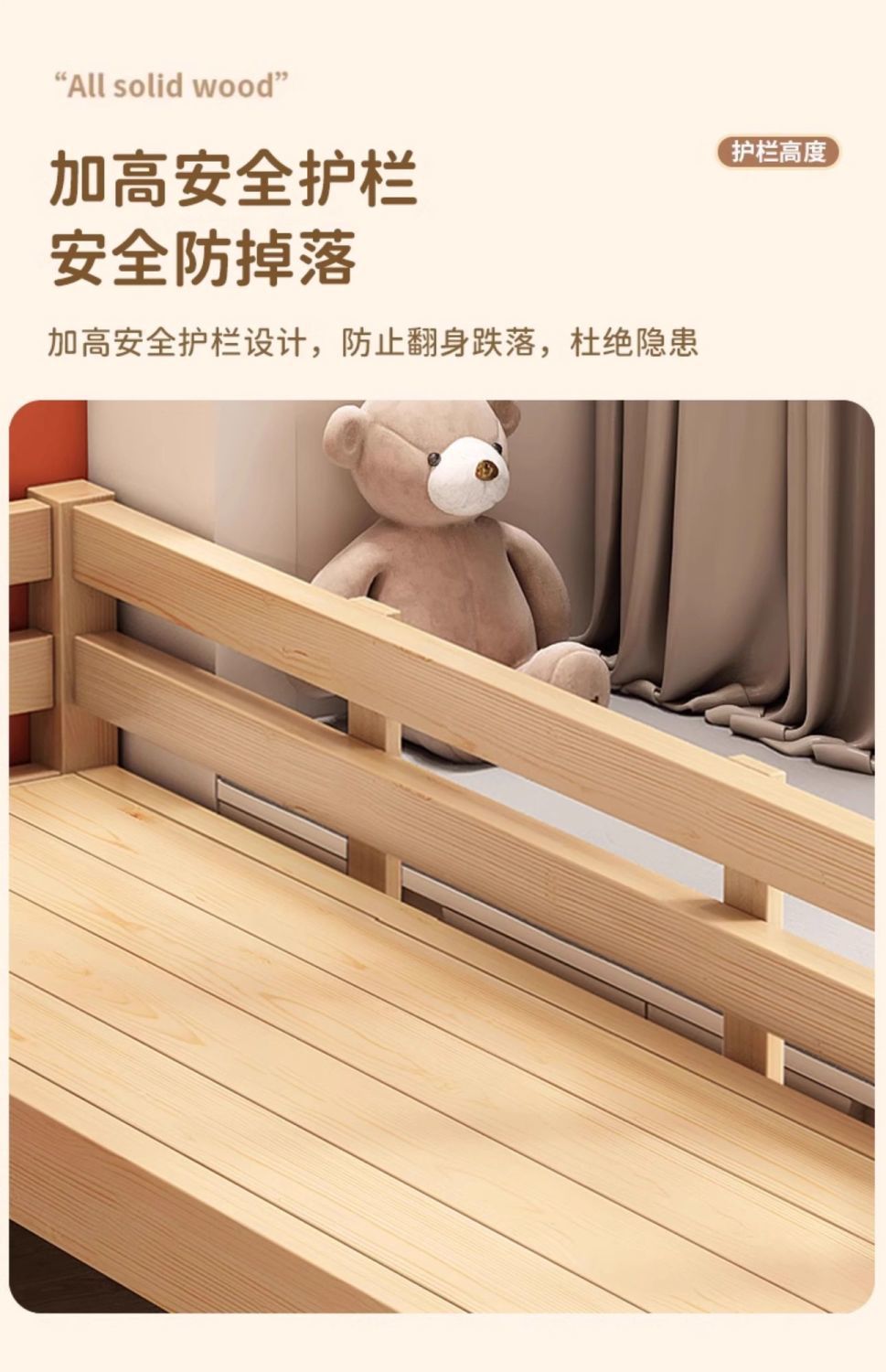 Кровать из массива дерева для детей с широкими защитными ограждениями для мальчиков и девочек односпальная кровать сплошная большая кровать