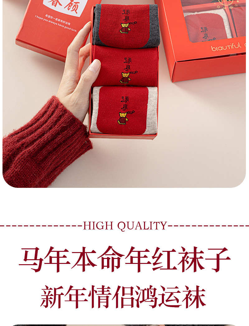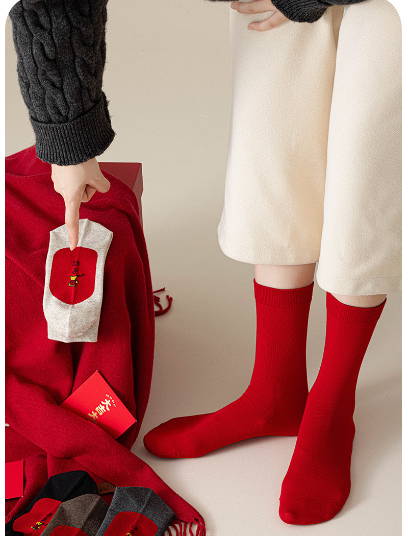 Год Лошади, Зодиакальный год, Красные носки, Носки для злодеев, Новогодние носки для мужчин и женщин, Носки для свадебного торжества, Носки из гребенного хлопка без швов