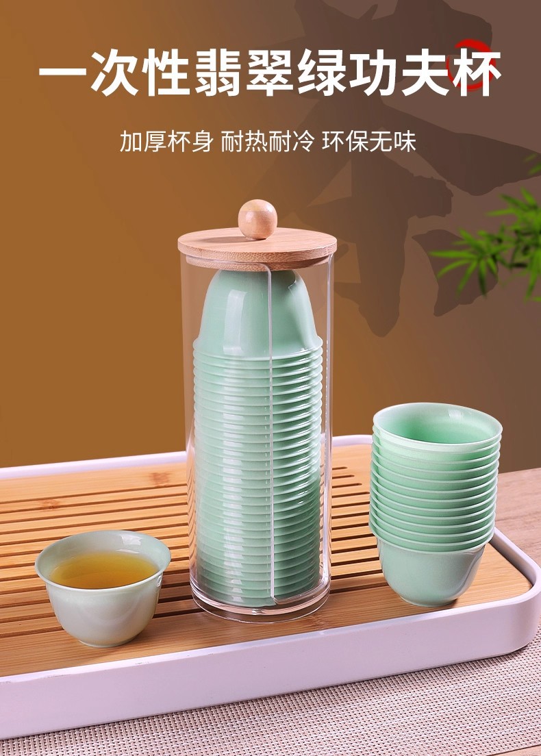 Одноразовая чашка для чая, изумрудно-зеленая чашка кунг-фу, утолщенная, термостойкая, набор для путешествий, чашка для питья чая, защита от ожогов, портативная