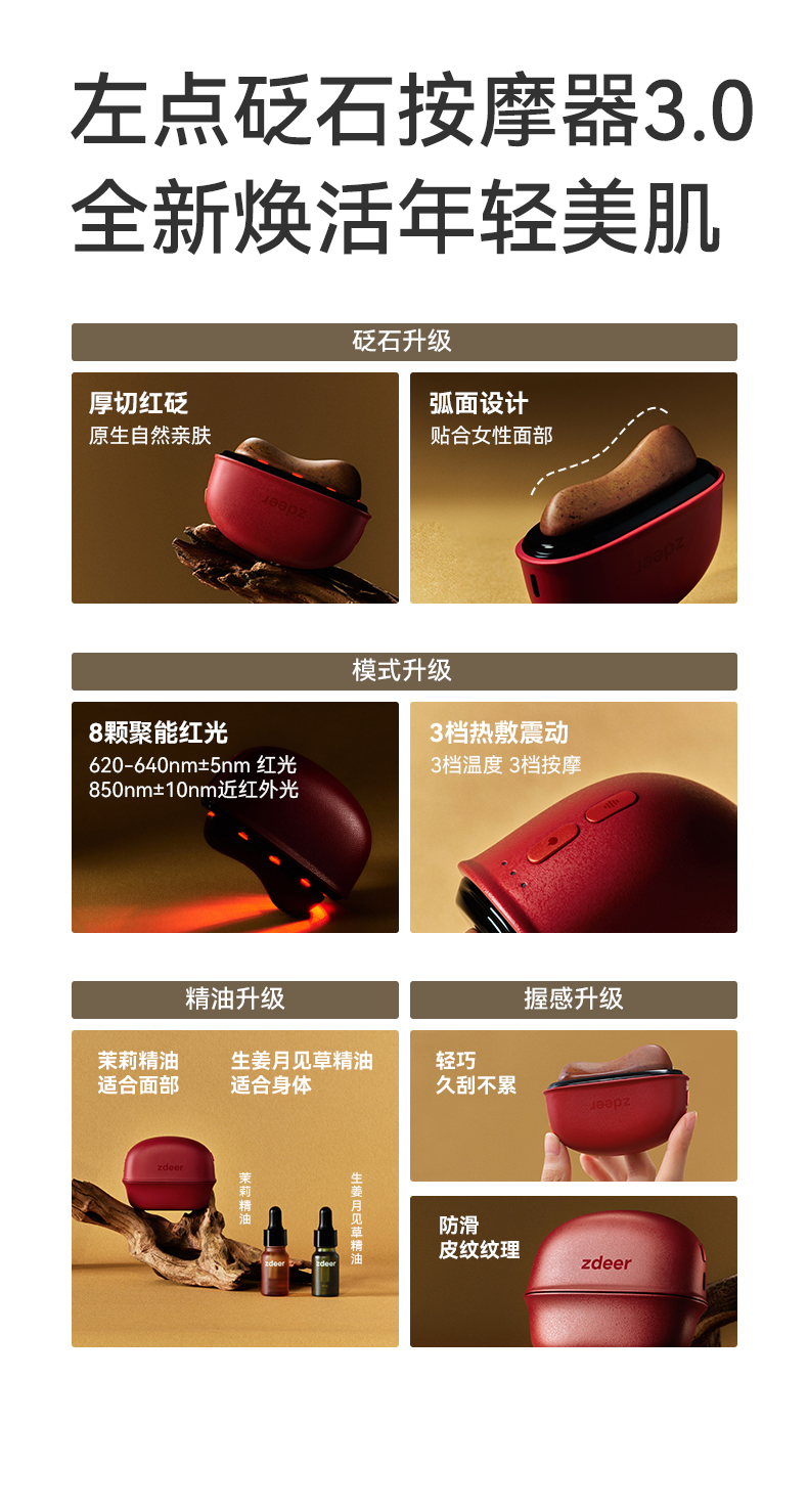Массажер Zdeer из бяньштона, версия с красным светом, подарочная коробка, инструмент для бритья лица, интеллектуальная электрическая скребковая доска с постоянной температурой