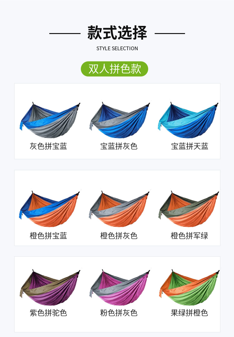 Прямые продажи от производителя, уличный гамак из парашютной ткани, одинарный и двойной, с цветным сочетанием, нейлоновый, расширенный, для отдыха внутри помещения