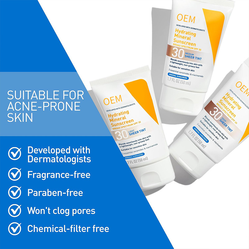 Кросс-бордерный кастомизированный увлажняющий минеральный защитный крем SPF50+, физическая защита, мягкая водостойкость, легкий и потоотталкивающий, экспортный OEM