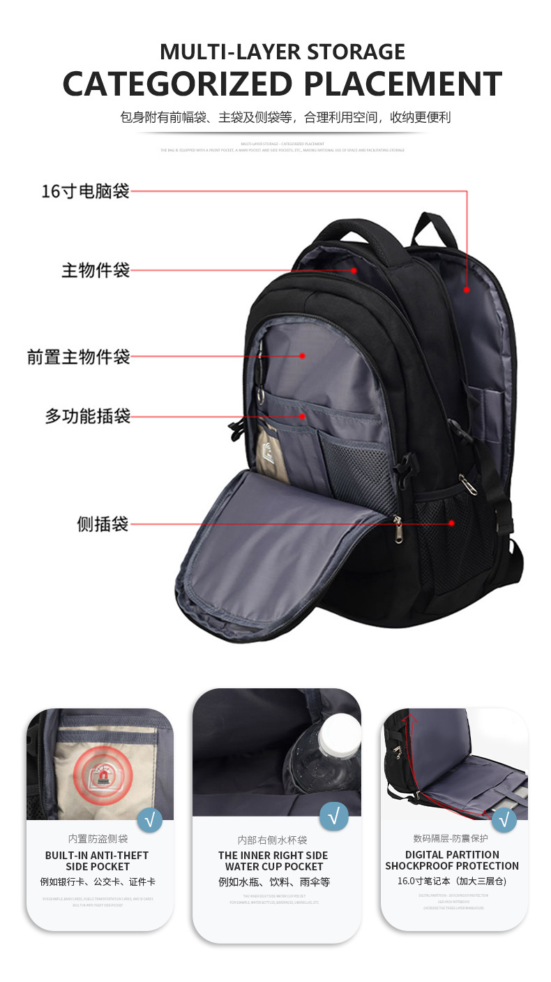 Мужской рюкзак для путешествий, досуга и бизнеса, однотонный многофункциональный рюкзак для коммутирования, большой объем