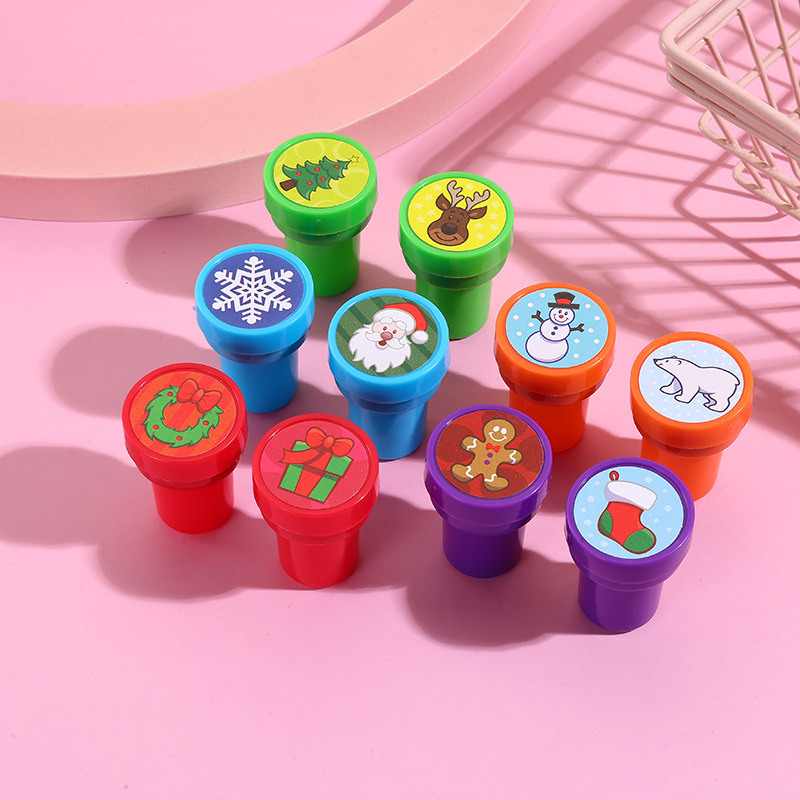 Кросс-бордерные милые рождественские штампы для детей, учеников начальной школы, круглые цветные штампы, праздничные подарочные штампы