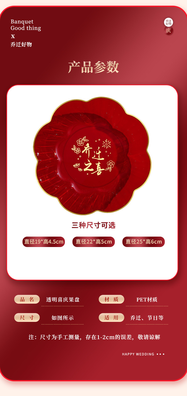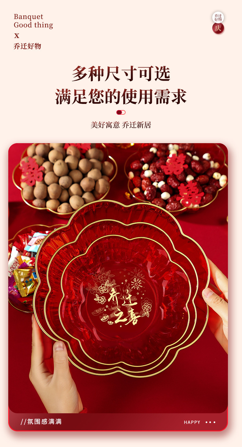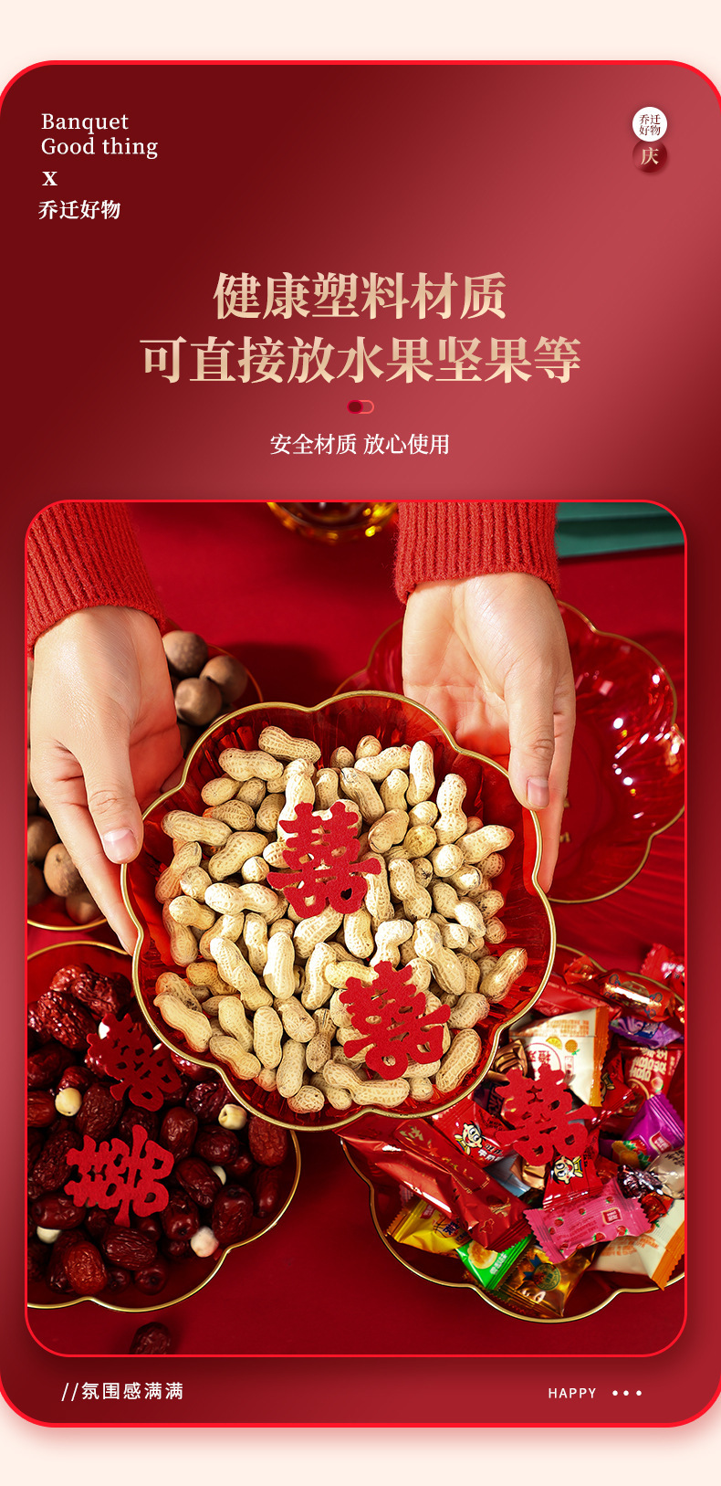 Красная пластиковая фруктовая тарелка для свадьбы, домашняя гостиная, тарелка для сухофруктов, свадебная тарелка для сладостей, тарелка для закусок