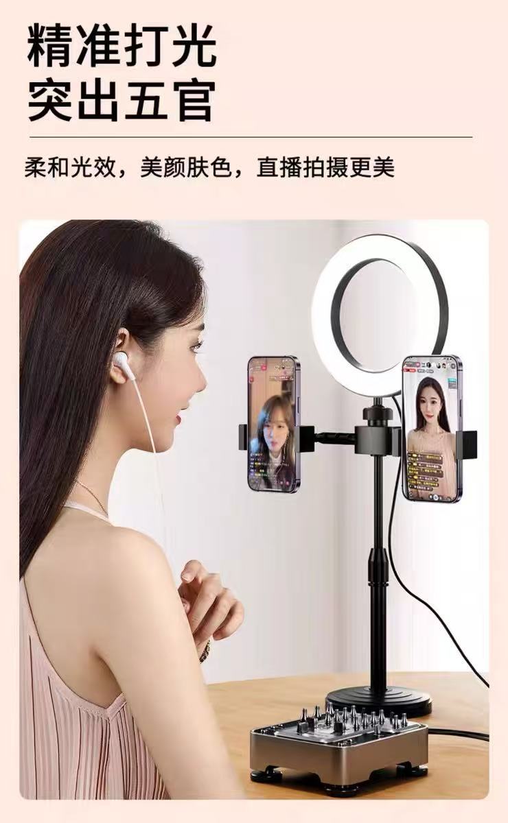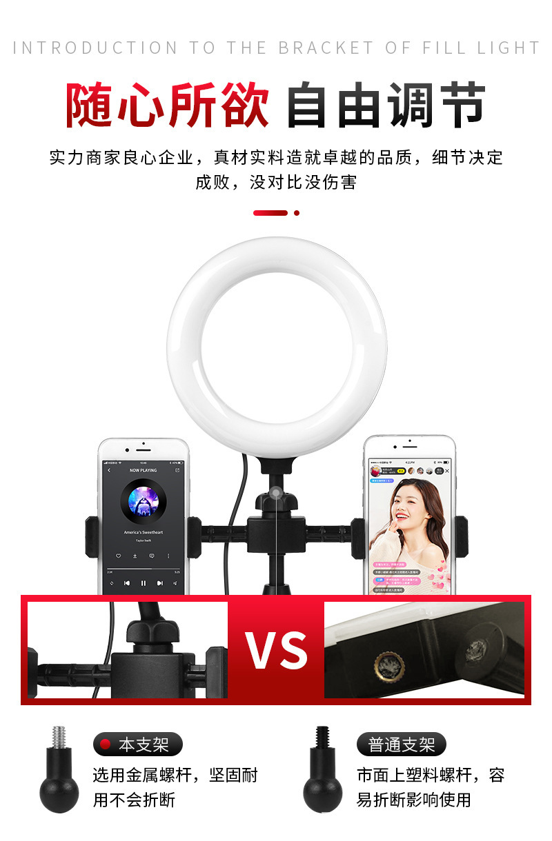 Подставка для мобильного телефона на столе с подсветкой для прямых эфиров, поддержка для селфи и бьюти-фотографии с двойной позицией камеры