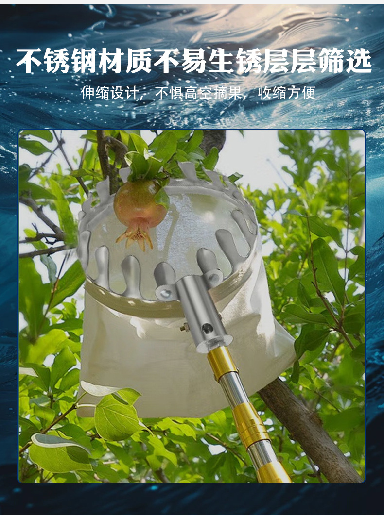 Утолщенный телескопический сборщик фруктов из нержавеющей стали для сбора высокорастущих фруктов, таких как ароматный кипарис, акация, манго, хурма, абрикос и сетчатые мешки