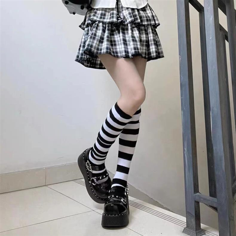 Крутые полосатые носки для женщин, длинные чулки выше колена, игровой стиль, высокий трубка, темные японские панк трендовые jk