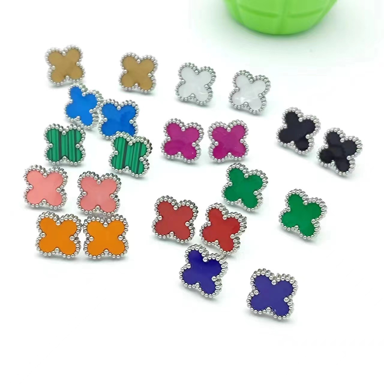 Модные стальные серьги в виде удачливого четырехлистного клевера, не тускнеют