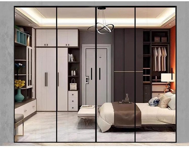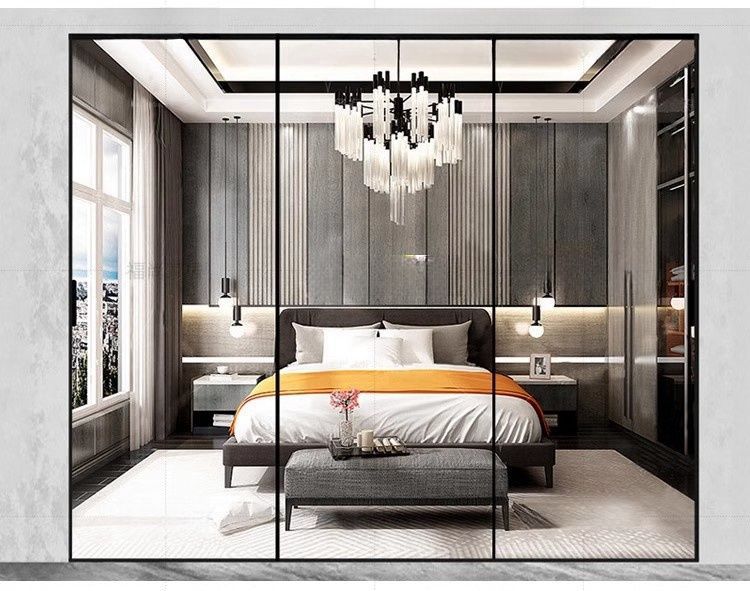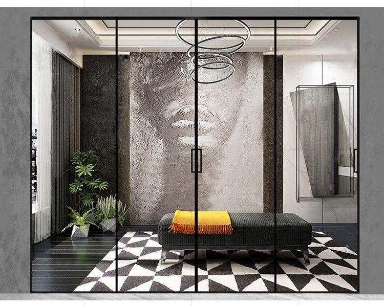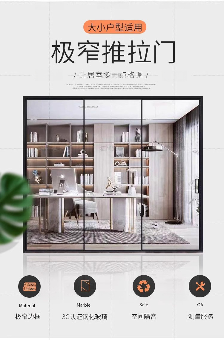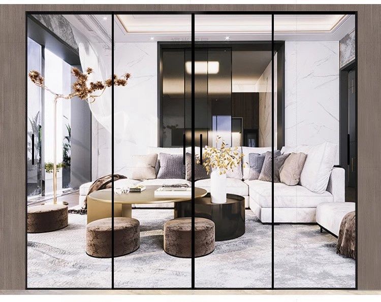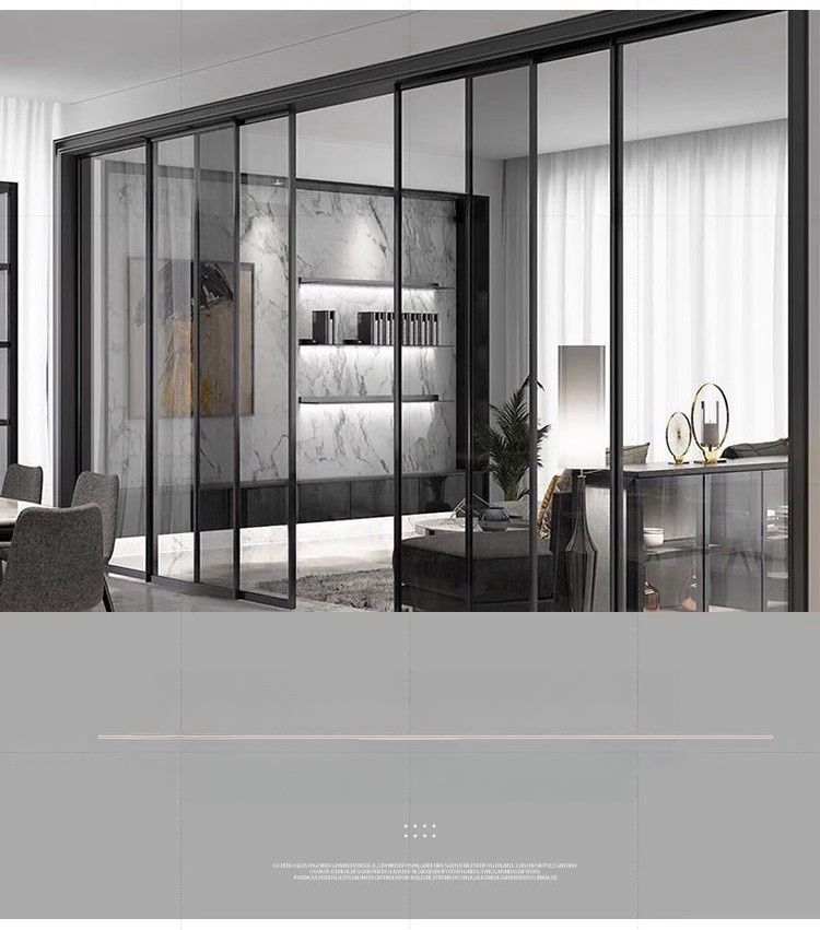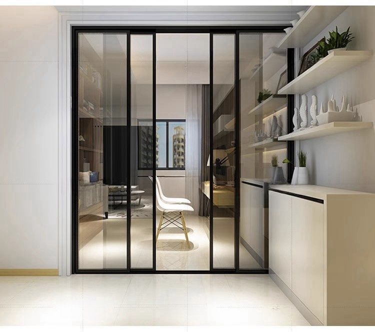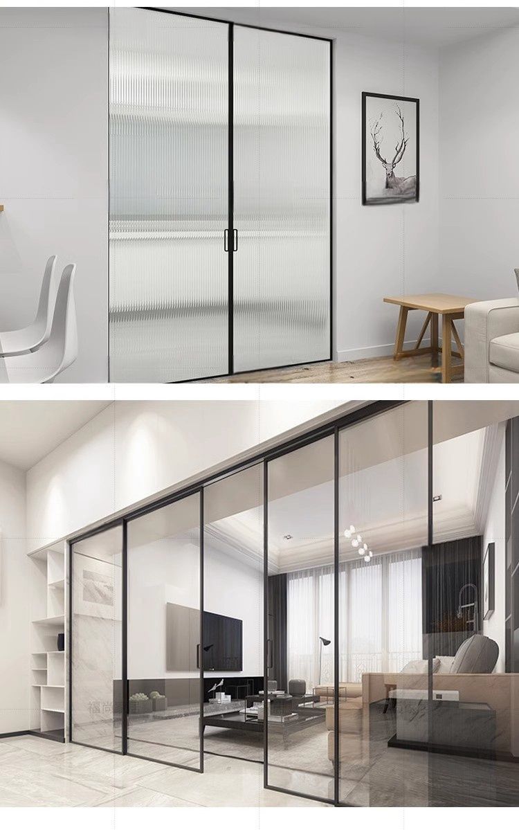 Раздвижная дверь для кухни и балкона, трехсторонняя связь, раздвижная дверь для гостиной и ванной, дверь из закаленного стекла, алюминиевая перегородка