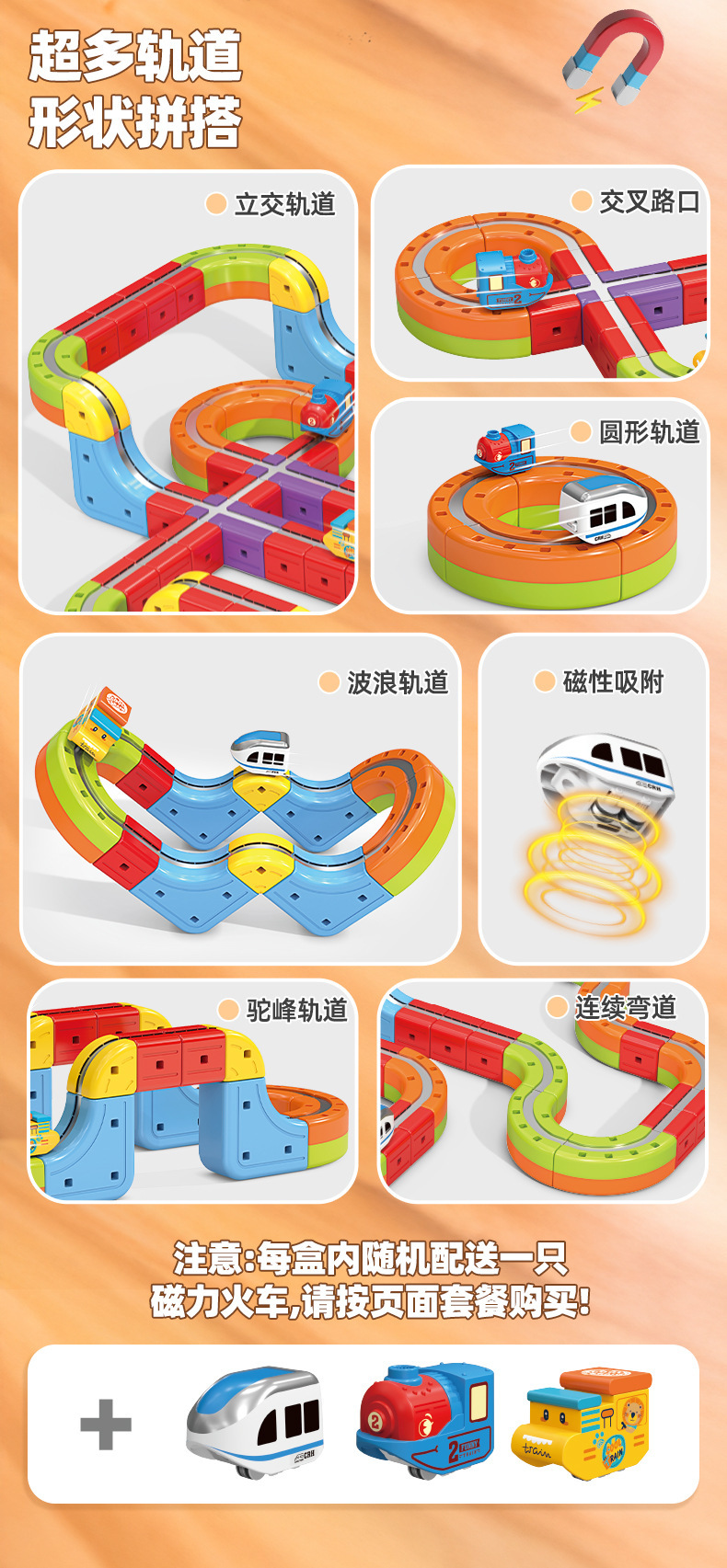 Трехдорожечный транснациональный универсальный магнитный трек для детей, обучающая игрушка, строительные блоки, антигравитационный поезд для мальчиков, DIY