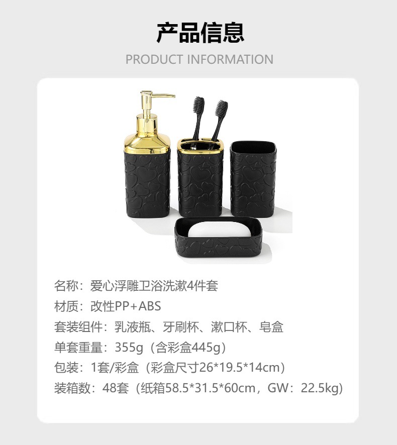 Набор для ванной Love, 4 предмета, пластиковые туалетные принадлежности