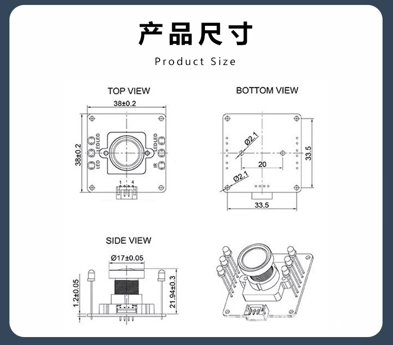 我们在摄像头模块、OEM和ODM方面有14年的经验,可以定制您想要的摄像头模块,如高感光摄像头、无人机、扫描枪、笔记本电脑、广告机、无人机ar、vr等摄像头模块
