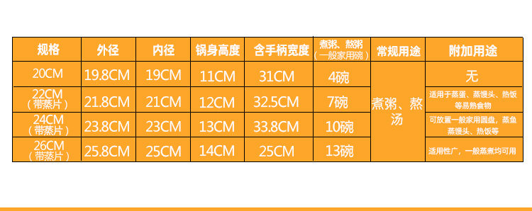 ![]() | 22cm soup pot [thick bottom] comes with steamed slices - quality assurance | ¥53.95 / ≈ 651 ₽ | 10000 | 6128366855418 | |