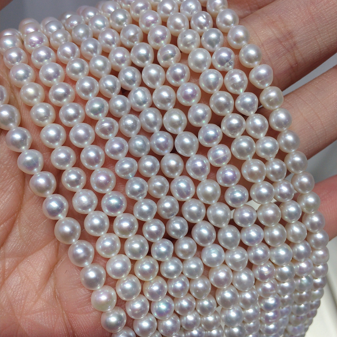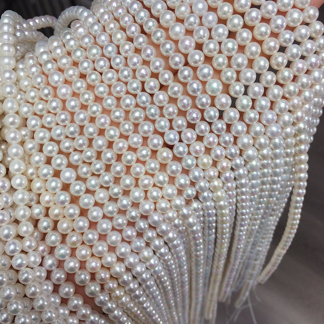 产品实拍展示,具体对应尺寸实拍图可以对照链接分类图片展示,珍珠尺寸有多种选择从3-6mm之间,珍珠品质不同等级不同,3A-6A,A越多代表品质越好,3A一般为近圆强光微瑕珍珠,品质较差,珍珠一般带有微瑕,光泽一般,4A品质瑕疵略少,5A6A品质最佳。