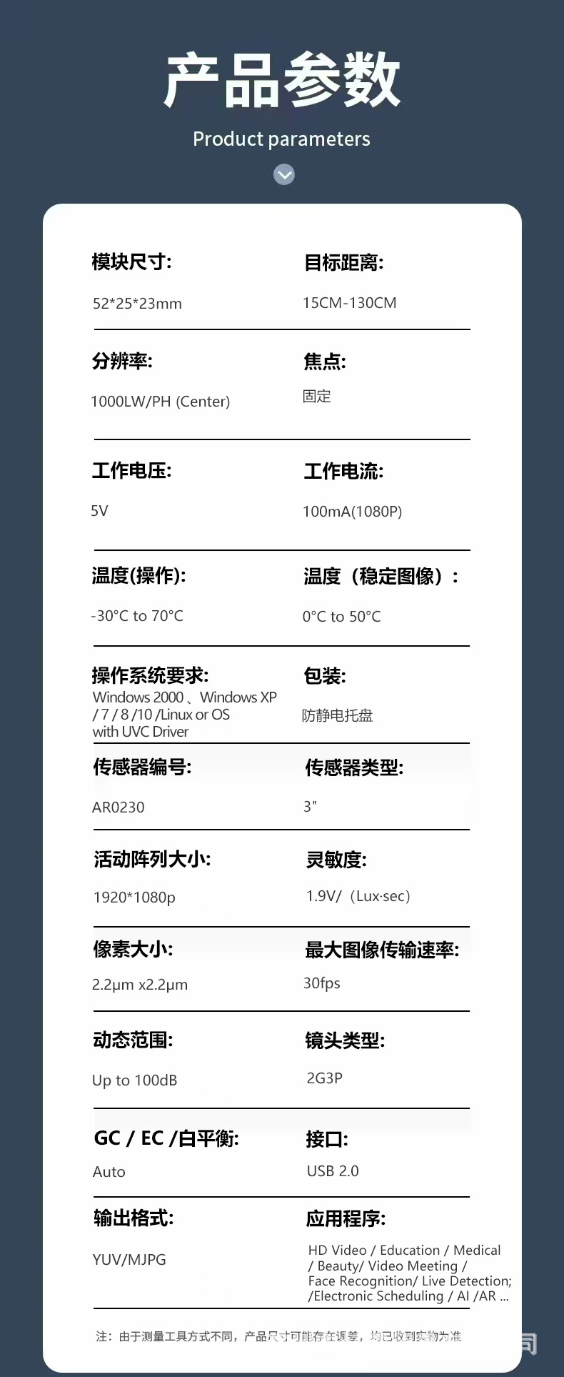我们在摄像头模块、OEM和ODM方面有14年的经验,可以定制您想要的摄像头模块,如高感光摄像头、无人机、扫描枪、笔记本电脑、广告机、无人机ar、vr等摄像头模块