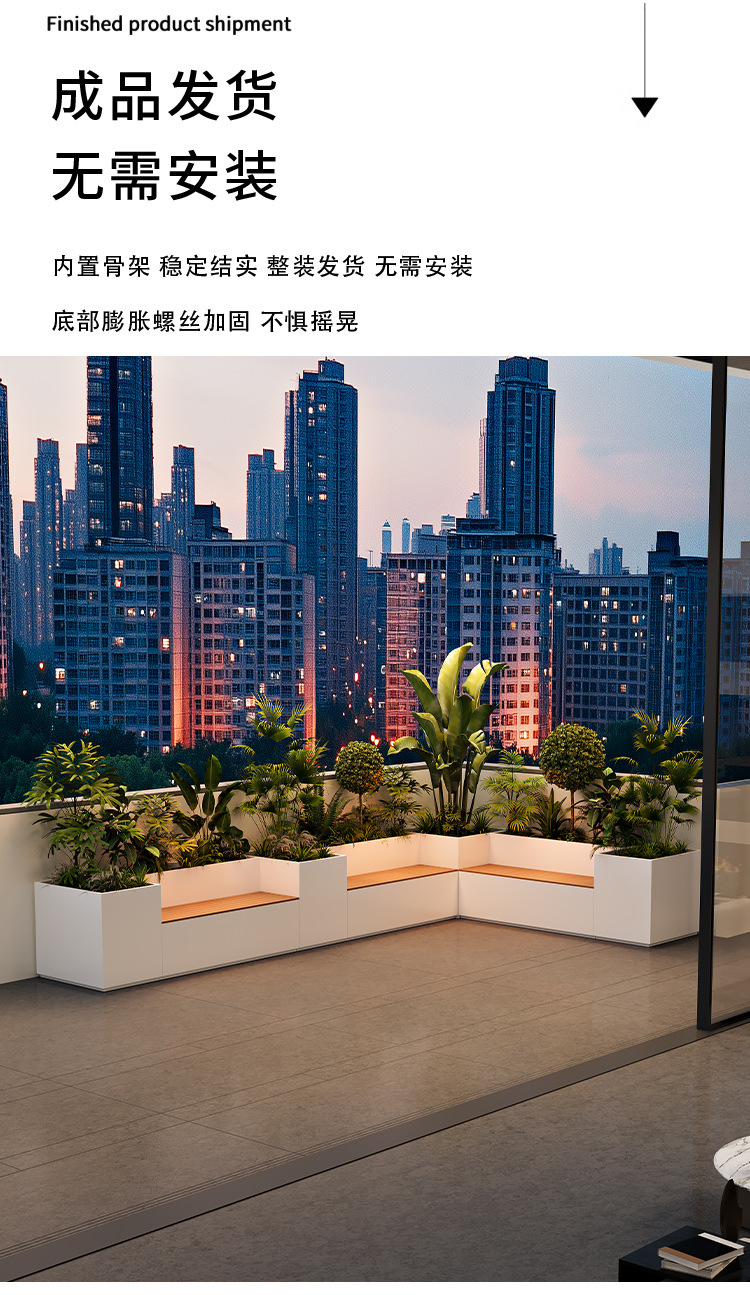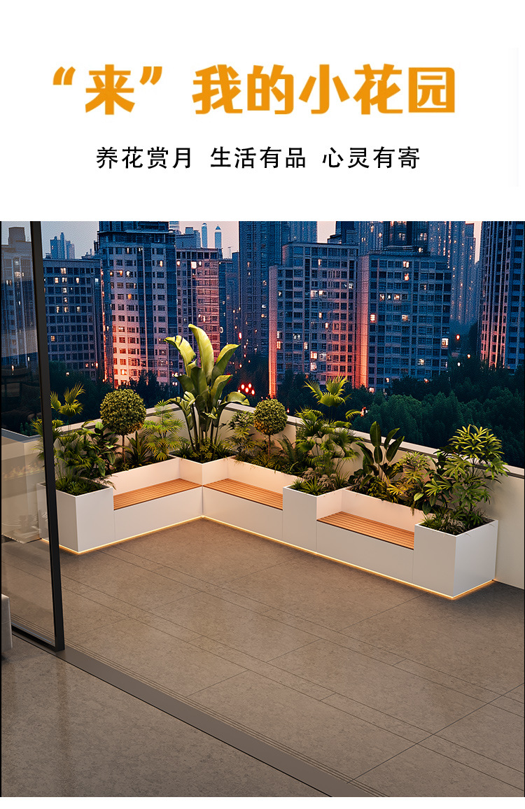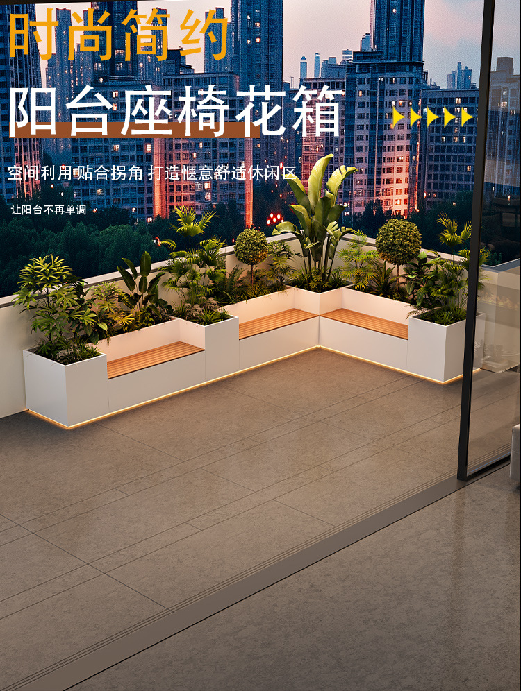 Уличный балконный ящик для цветов из нержавеющей стали, сиденье, солнечное светящееся место, прямоугольный ящик для цветов
