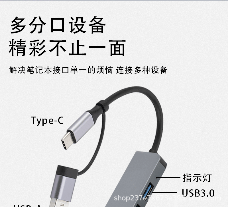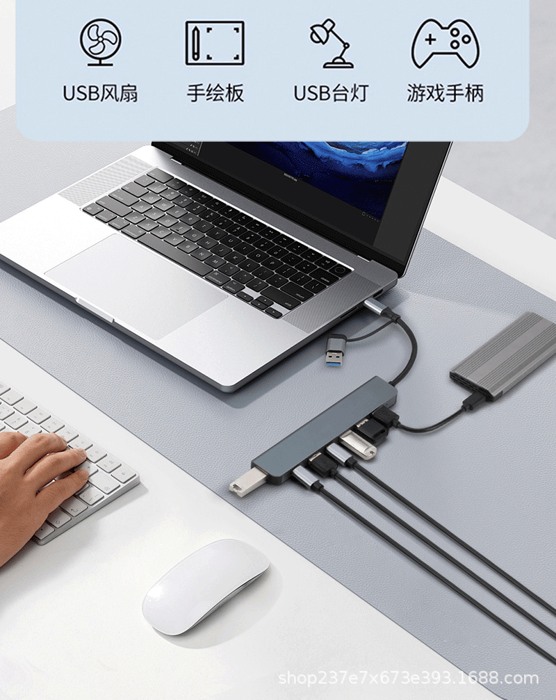 Подходит для ноутбука Type-C один к семи USB док-станция с двойным разъемом семь в одном USB hub 3.0 док-станция