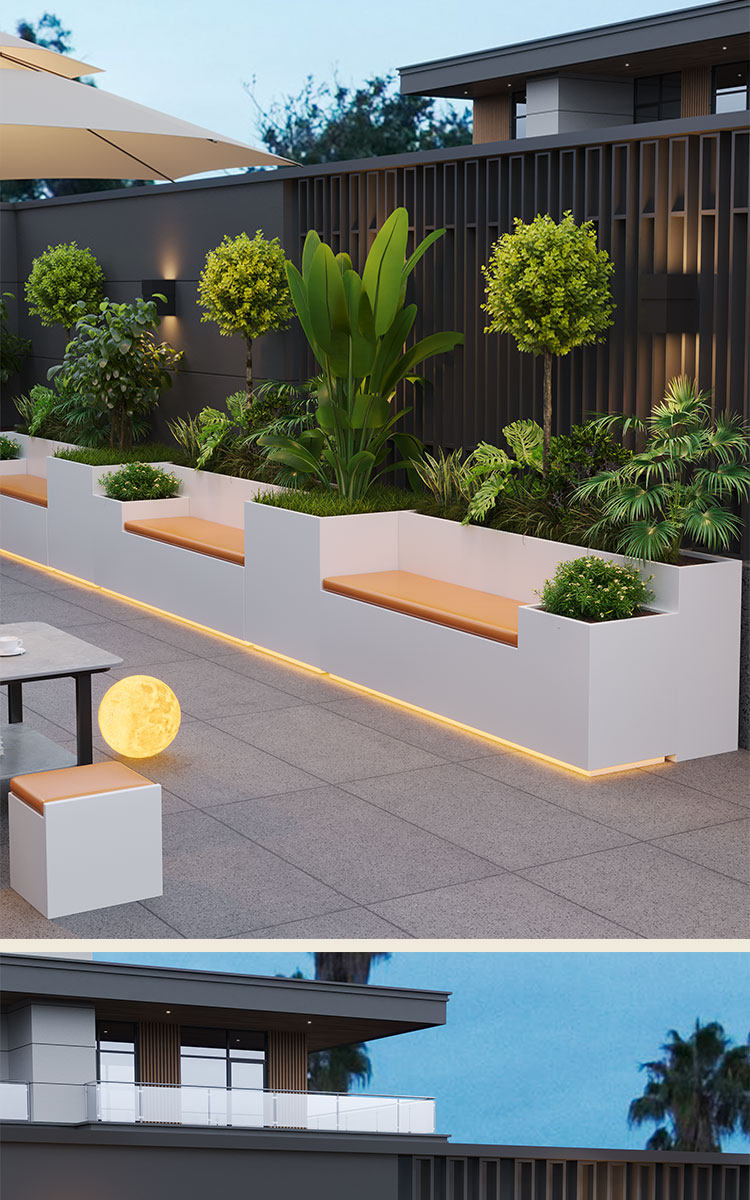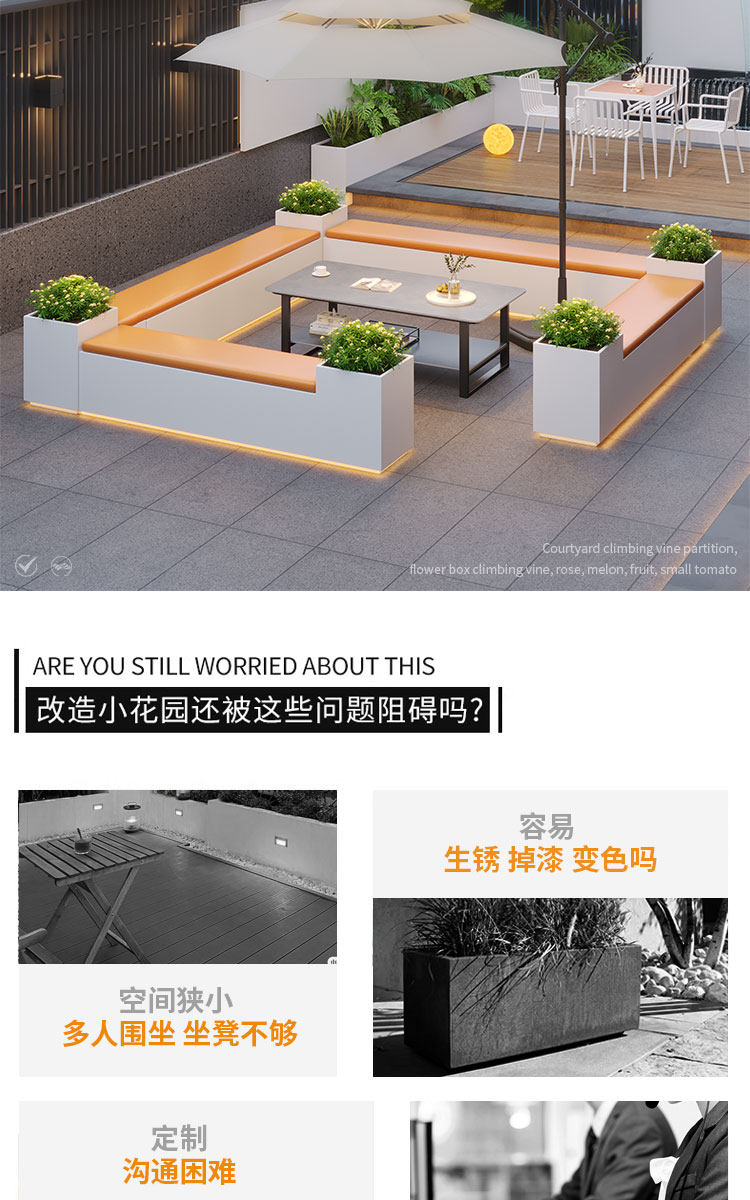 Ящик для цветов из нержавеющей стали, металлический кованый забор, сиденье для сада, комбинация ящика для цветов
